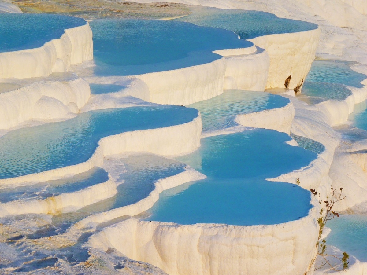 The phenomenon we see in Pamukkale only occurs in one other place in the world, specifically in the Yellowstone National Park, USA. Pamukkale is located in inland Turkey, about 14 kilometers from the city of Denizly, above the valley of the Menderes river and in an area with many thermal springs.