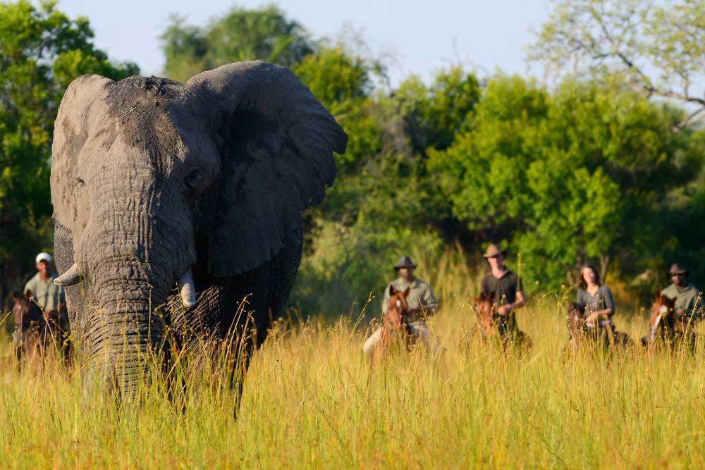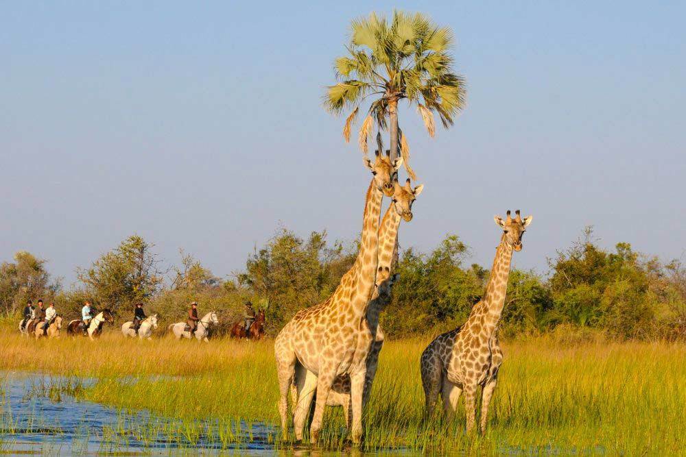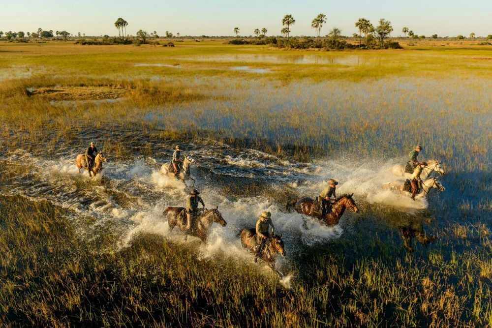 The Okavango Delta represents an extensive closed drainage basin in the northwest of Botswana. It is here that African Horseback Safari offers the unique opportunity to experience a safari on horseback. You will race through the largest delta in the world on a fast horse, catching a glimpse of crocodiles, zebras, giraffes, elephants, hippos and leopards. You will spend the night in the luxury Macatoo Camp on a private game reserve where you will be able to indulge in a wonderful candle-lit dinner.