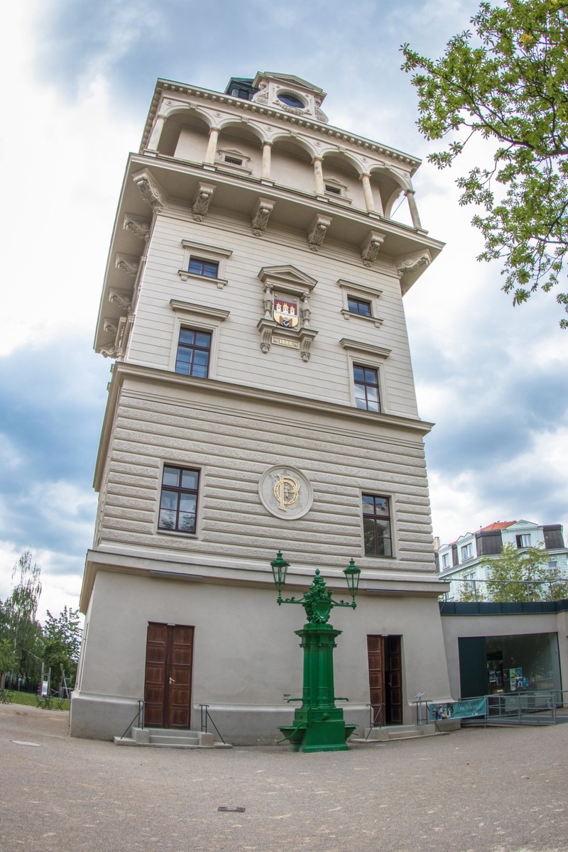 The historic pump house directly in front of the tower entrance was renovated as well. The listed pump from the 1880s originally stood in Prague 2. It has been given a new coat of paint and two lamps that were formerly part of it have also been restored.