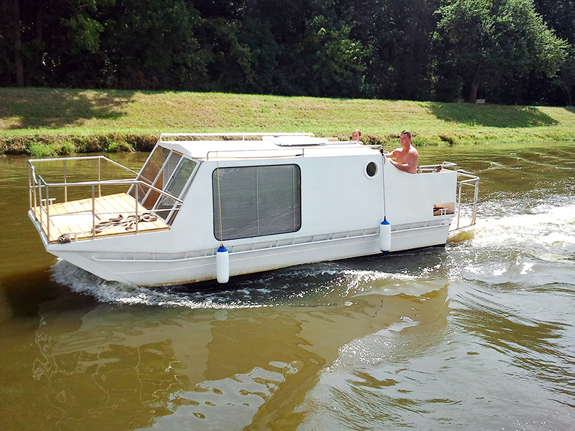 We were surprised by all the possibilities that the Baťa canal offers. Many companies provide houseboat rental services here, so you have a lot to choose from - according to style, size or price. Our choice fell on the company Baťák houseboats, partly because they design and build their own vessels. That's why we decided for a stylish holiday "Made in Czech"!