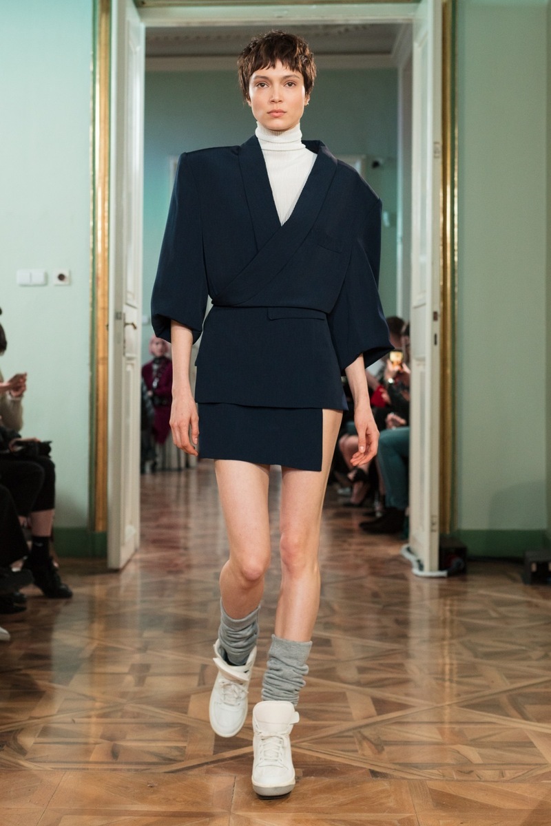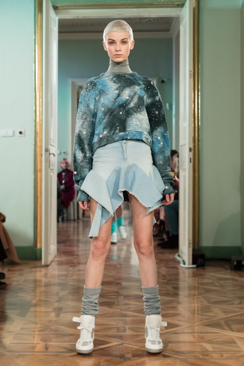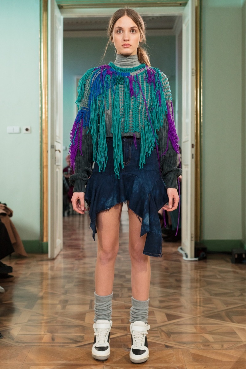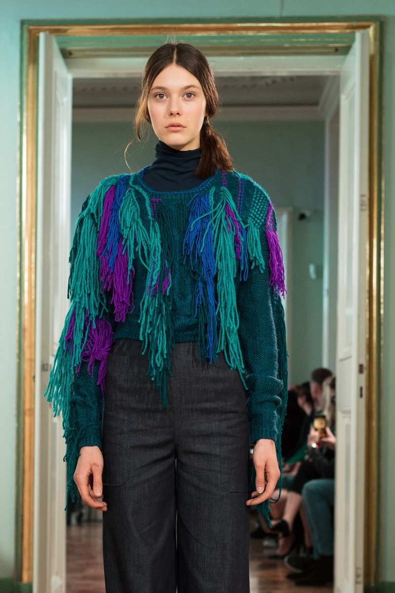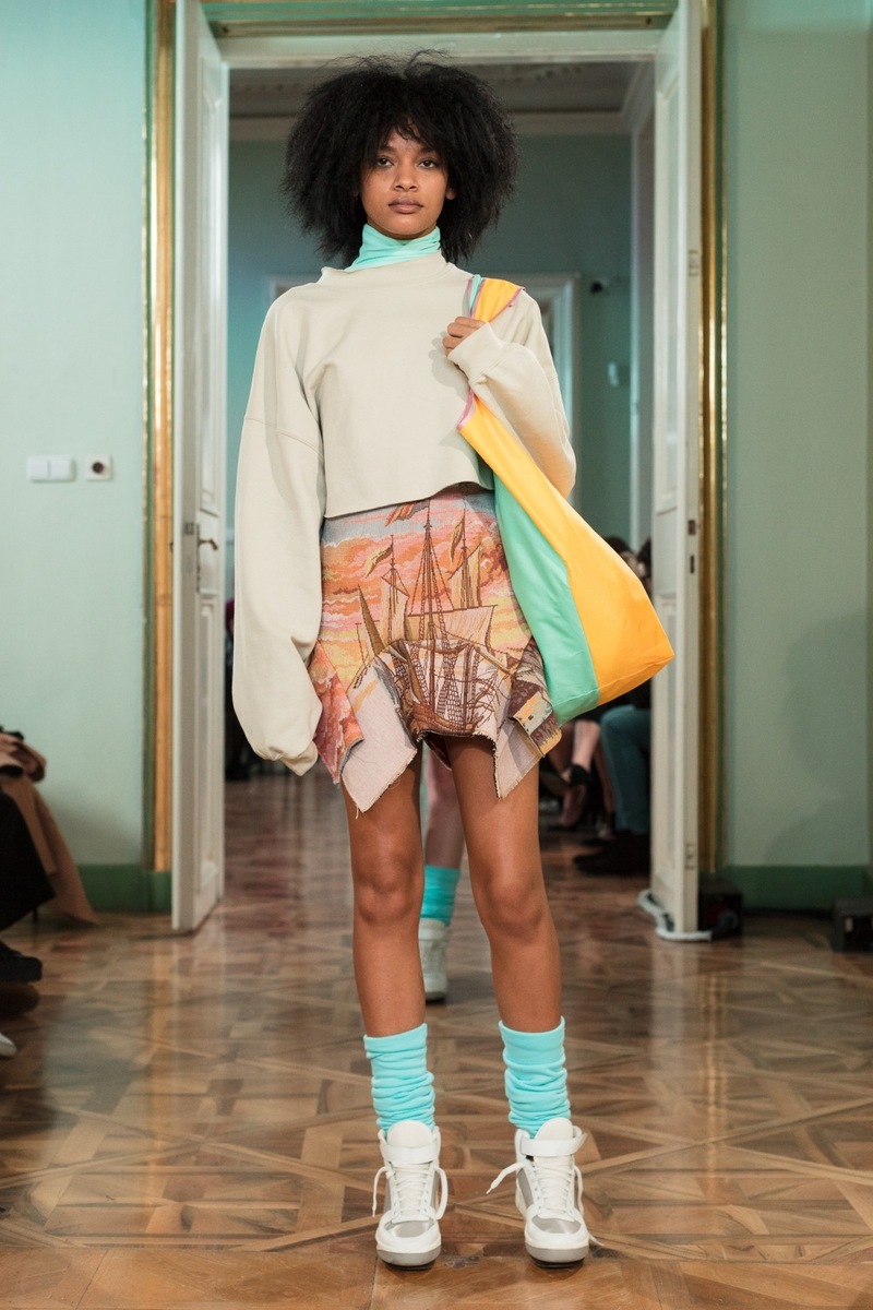 If you love luxurious retro style, then you are sure to adore the shell suites from Jakub Polanka’s FW18 collection. Delicate pastel colours and interesting shapes might return you to your childhood or teenage years, when these things were still in fashion. Polanka is bringing them back! Another striking feature of the collection were the luxurious sweaters with colourful fringes, which give flair to simple trousers. Another stand-out element at the show were the oversized handbags, which are the latest “must have item”. So if you don’t have a serious handbag yet, choose one from the fall/winter collection of this talented designer.