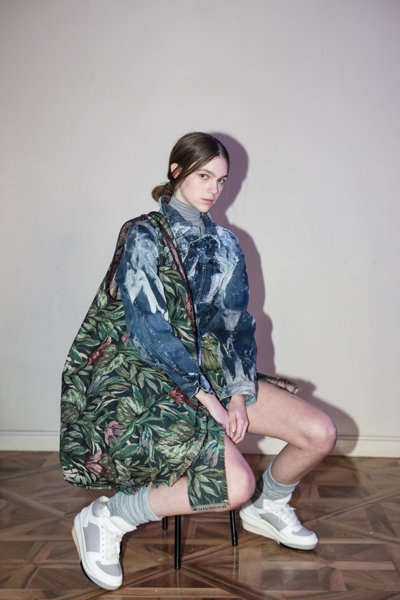 The luxurious show started off with elegant and minimalistic outfits, moved into oversized and street style, and finished with a colourful retro shell suit. The first part of the show was full of elegant items with wider shoulders, oversized jackets and coats, which accessorised elegant trousers and turtlenecks. The models took over the runway in asymmetric short miniskirts, which could be said to have dominated the rest of the show. What appealed to us, however, was the vast quantity of variations to choose from. Do you like jungle style, flowers, tie-dyeing or ordinary denim? Luxurious denim appeared on several garments in the collection. We particularly liked the tie-dyed cosmic combination, which created a unique effect. There were sweatshirts, jackets and coats in a similar style, which are sure to become an original accessory to every simple outfit.