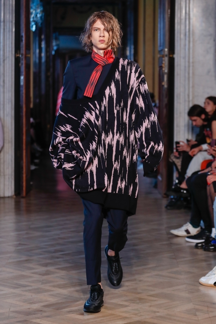 The dominant pieces here are definitely the luxury maxi pullovers which fell over one shoulder of the models. And oversize sweaters are certainly in now! Moreover, maxi sweaters have the advantage of being able to be worn both by men as well as women. If, ladies, your man or partner hesitates over a maxi pullover in pink, support him. You will also be able to wear them, too!