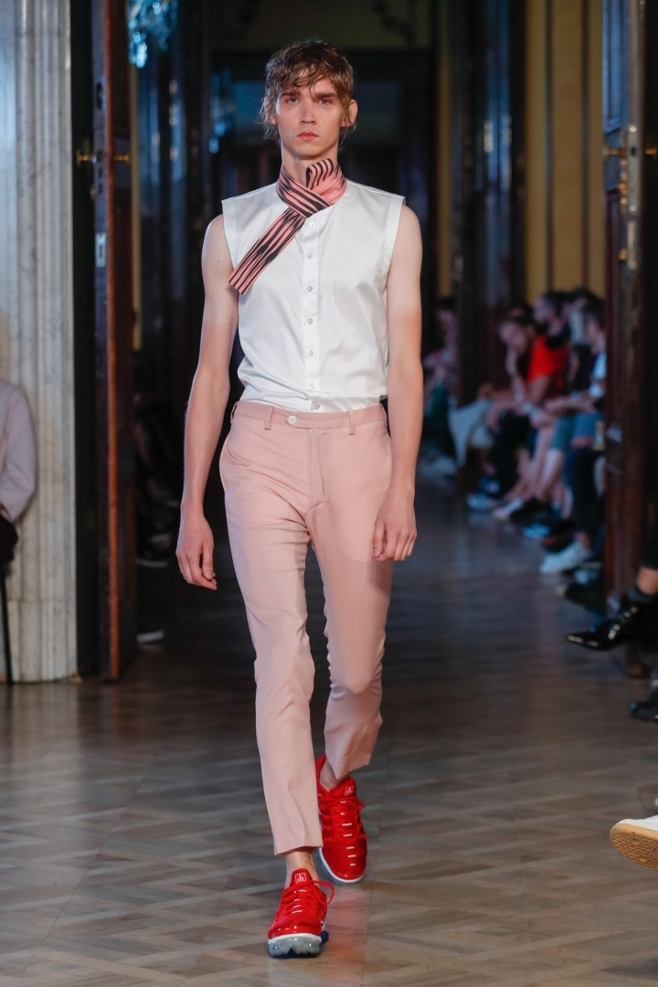 Colours such as pink, light orange and red are widely seen as colours for the fairer sex. But Adam Kost is of a different opinion. His luxurious Men´s Collection SS19 is made precisely in these colours.