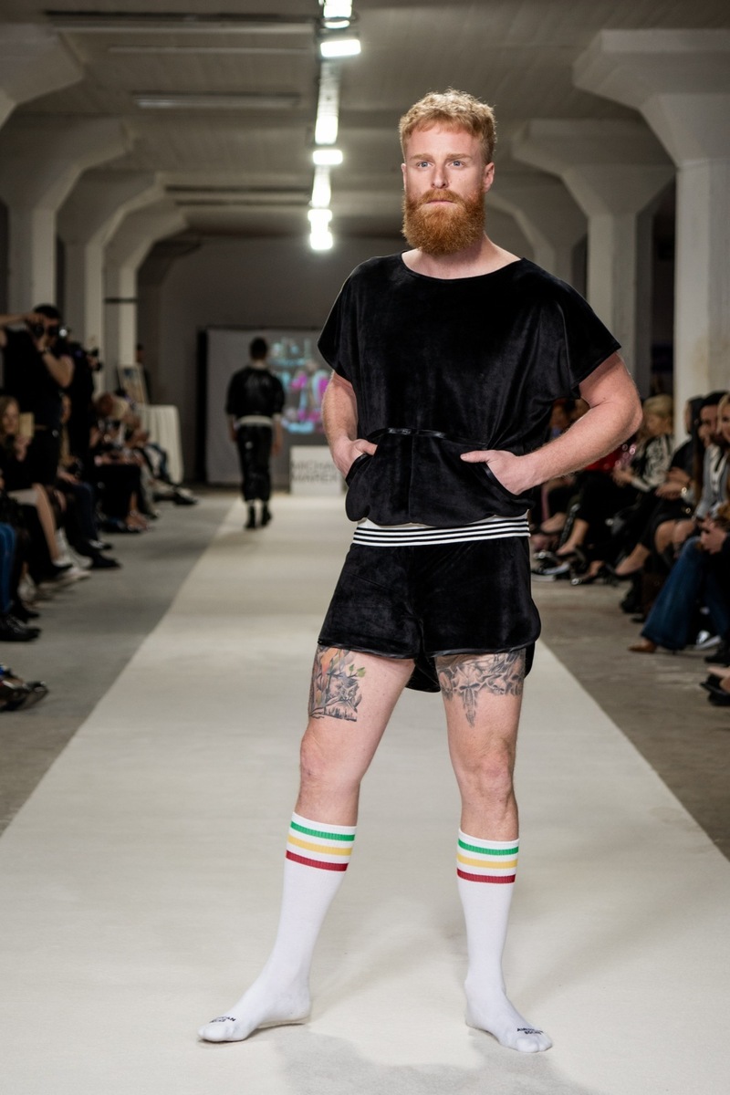 The show opened with the hit Sexy and I Know It; half-naked models appeared on the runway with neon and metallic colored shorts, knee-high socks or skin-tight tops. Man of the Year 2017, Matyáš Hložek, or Nela Boudová's son also appeared among the models.