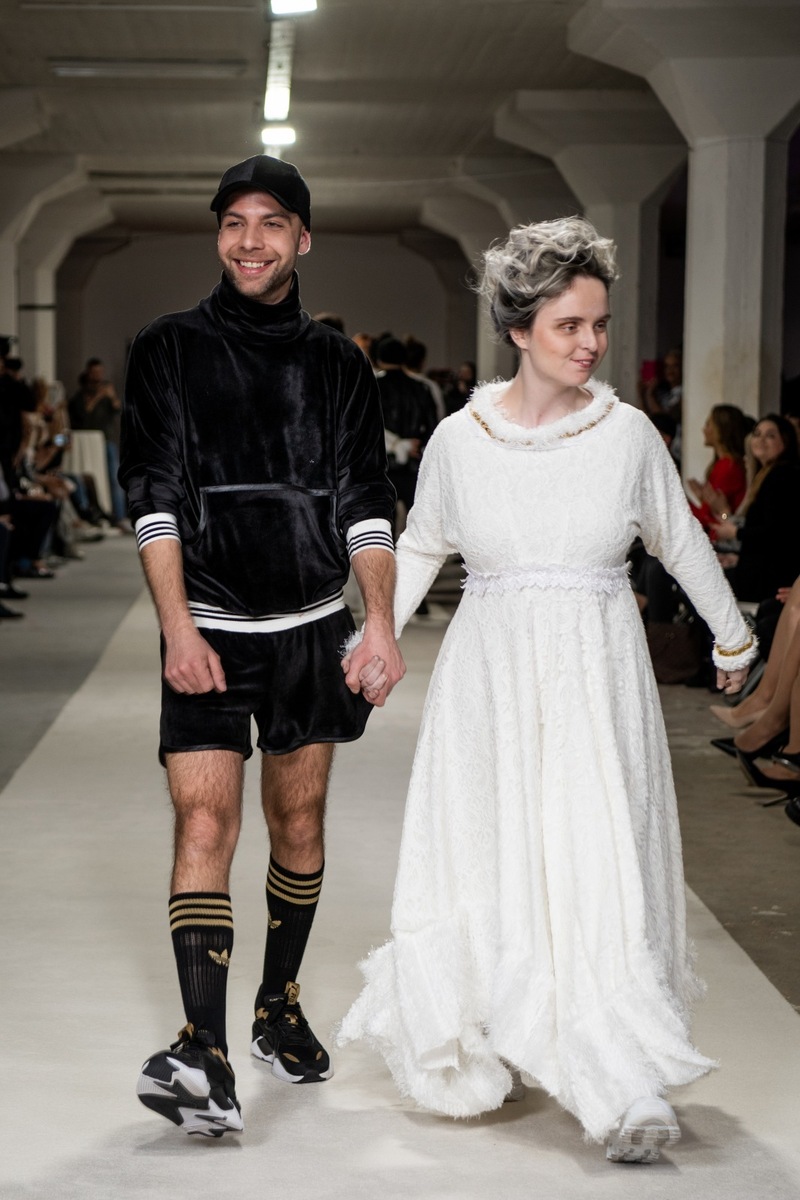 The designer divided his 24/7-365/days-4ever collection into three lines that create a compact unit together - men's, women's, and unisex. For guests there was a welcome drink in two forms - a mix of Tomo of Finland vodka, and a local drink from the Chomout brewery. The show promised a lot; just the campaign photos for the unisex line were made in the exotic environment of the Sahara desert. What Michal Marek ended up presenting, however, surpassed our expectations!