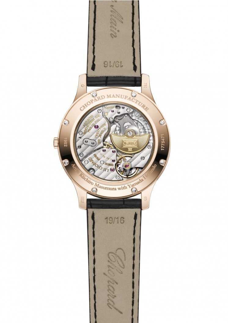 The divine offering is rounded up by a Chopard watch, LUC XP URUSHI, simply a work of art. The dial of the luxury accessory made of 18-carat gold is adorned by an unfettered horse, blossoming lotus and the sparkle is brilliant.