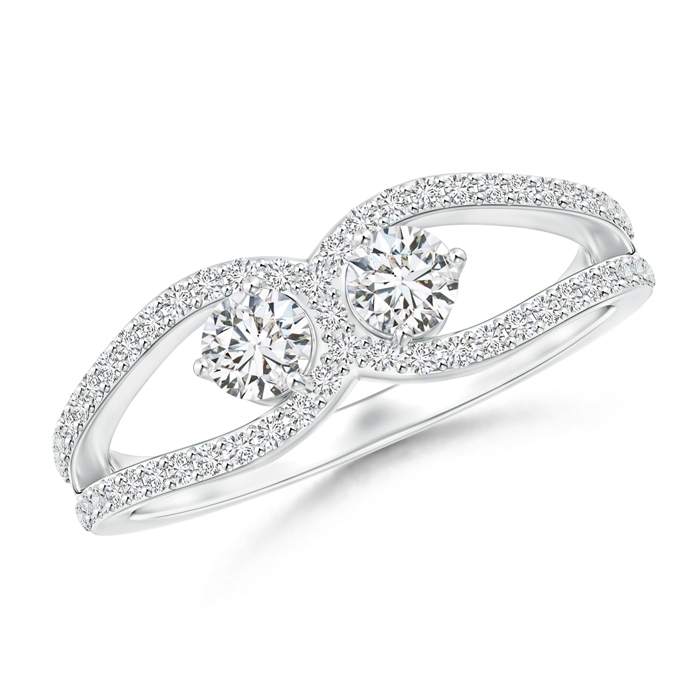 Angara included in its offering not only necklaces or earrings, but also a ring. And not just any - an engagement one. This luxury jewel is available in platinum or in 14-carat gold. It is adorned by two large round precious stones set in a loop in a floating style and also several smaller diamonds around the circumference.