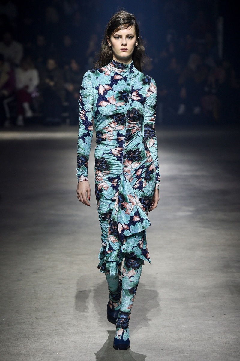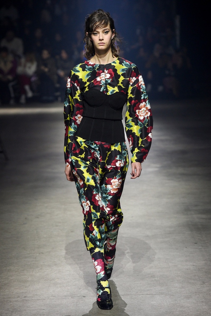 The deluxe French Kenzo brand, which was established at the beginning of the nineteen seventies by Japanese designer Kenzo Takada, appears to constantly return to its “roots”. The F/W 2018 collection is basically crazy and this is confirmed by the cheap-looking dragons or gorillas on the knitted sweaters. Unfortunately, the graphic design was worse than that seen at the market in Holešovice.