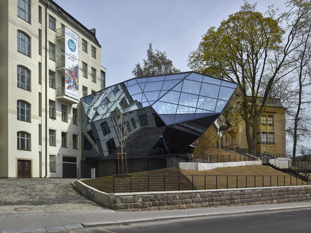 At the beginning there was a typical component of the Jablonec glass jewelry - a glass crystal. Therefore, the extension to the Art Nouveau part of the Jablonec Museum assumed its appearance. Its authors are Michal Hlaváček, Zdeněk Holek and Karel Musil.