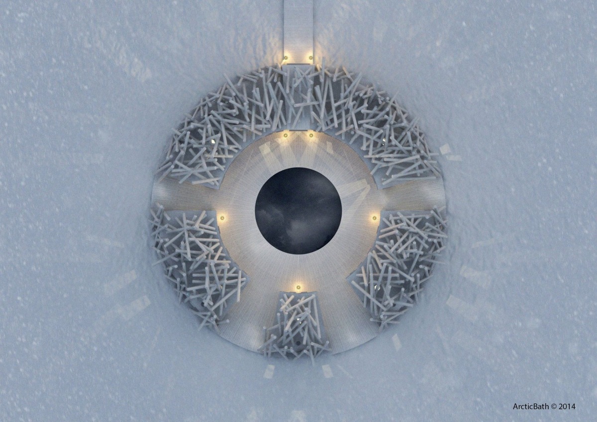 The arctic bath is inspired by the “floating wood period”: a period during which wood was transported from the local forests along the river to processing sites.