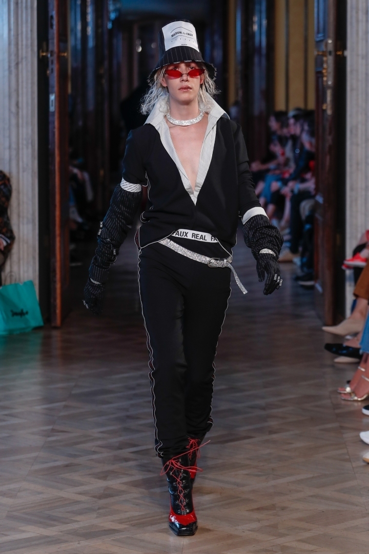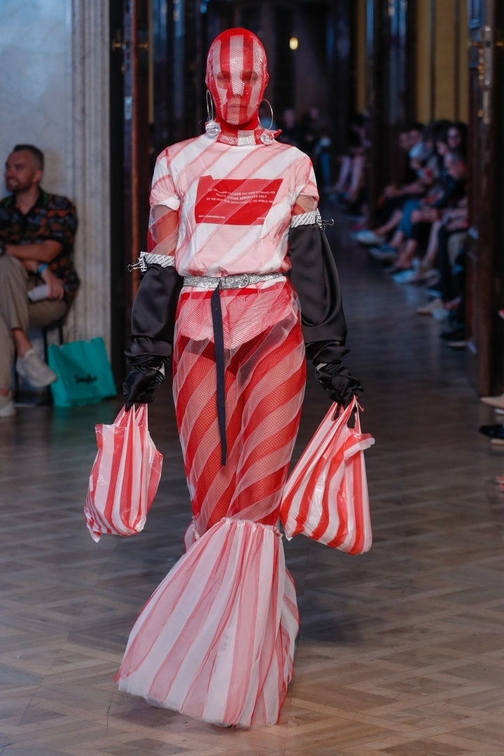 While the female designer duo Schepers Bosman presented a fairly simple collection based on blue and denim, the creative MAISON the FAUX studio bet on luxurious extravagance instead. The brand celebrated its five-year anniversary with garments made of plastic bags and some seriously controversial items.