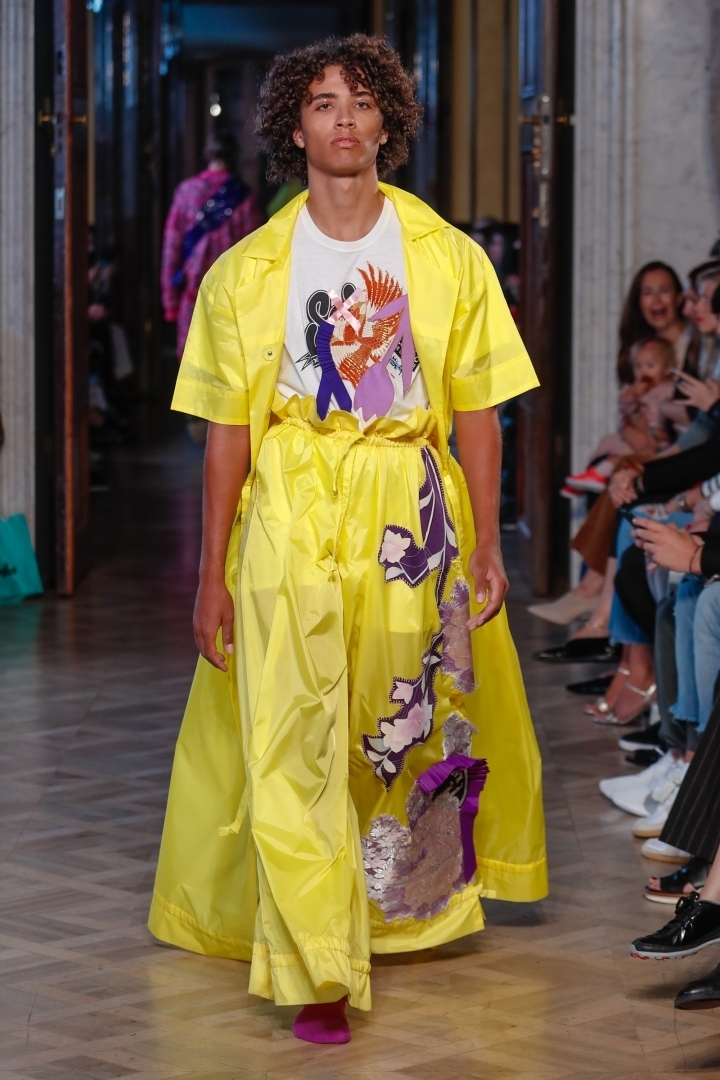 The last collection belonged to designer duo Diek Pothoven and Luuk Kuijf, working under the common brand MARTAN. The designers presented an unconventional and crazy play of materials, cuts and colours.