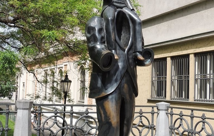 Scenes depicted in Róna’s paintings are characterized by an eerie, dark and mysterious atmosphere. Some works show mythological-prehistoric worlds, others contain a vision of a society and landscape after a global catastrophe, while some paintings are reminiscent of a sci-fi world. Sculptures of the artists are connected by a bizarre story referring to archetypes and mythical roots of our consciousness. Róna is our guide in the world of various beasts and mysterious creatures. Jaroslav Róna is also unique thanks to his use of symbolism. He prefers hidden, remarkable symbols and parables instead of clear reality. On the other hand, he is no stranger to hyperbole. His unique sense of humor lightens up the atmosphere and represents a stark contrast to the absurdity, feeling of being lost, astray or without roots, as is typical for Franz Kafka.