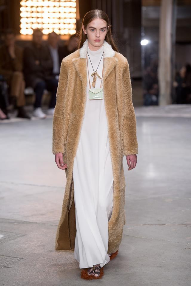 And one romantic item that I have left for the end: the long and absolutely simple white dress with delicately cream-coloured lamb fur, a necklace and a kind of white pouch round the neck. It looks to cozy and tender at the same time! It reminds me a bit of Hanka Zagorová´s video clip “Winter, winter, winter, winter” (1975). Somewhere for a weekend to a luxurious mountain cabin with a lit fireplace inside - what a dream!