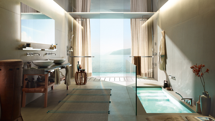 An oasis of peace. Nowadays, bathrooms are created with a view of simplicity and minimalism. There is an apparent effort to create a sort of “spa temple”. Given that our lifestyles are becoming increasingly more hectic and stressful, home owners often look towards technological advantages to simplify their lives. For example, the AXOR ShowerSelect: thanks to Hansgrohe Select technology, you can control the shower with the simple push of a button.
