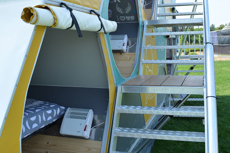 Inventors Barbara Vanthorre and Ron Hermans teamed up with the product, service and brand agency Achilles Design and with business advisor specialist, One Small Step, they created B-and-Bee. To start with, they spoke to festival visitors to learn about their requirements for ideal accommodation and worked accordingly.