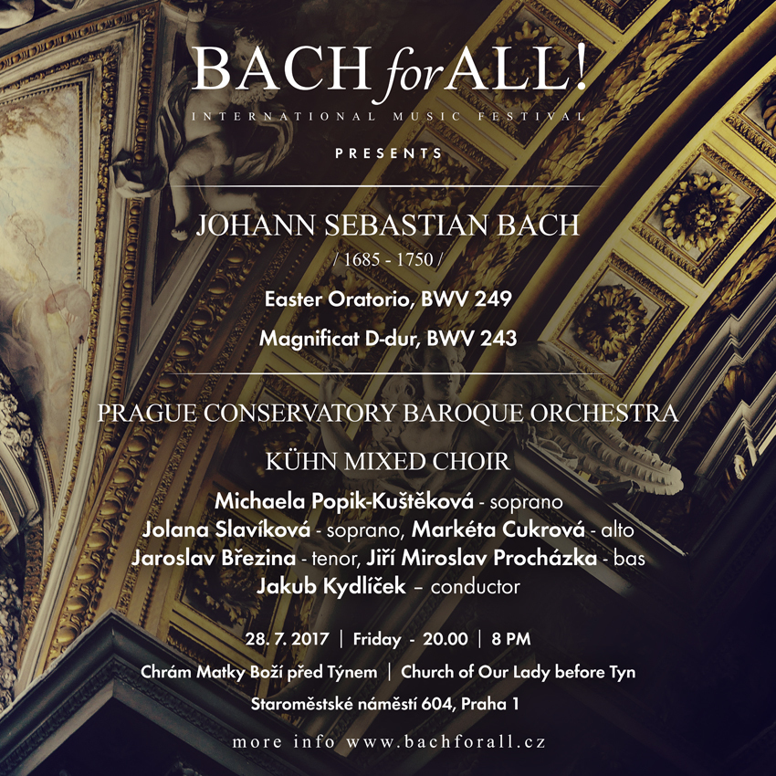 The final concert in the festival will be a performance of the Magnificat in D major and the Easter Oratorio in the Church of Our Lady before Týn.