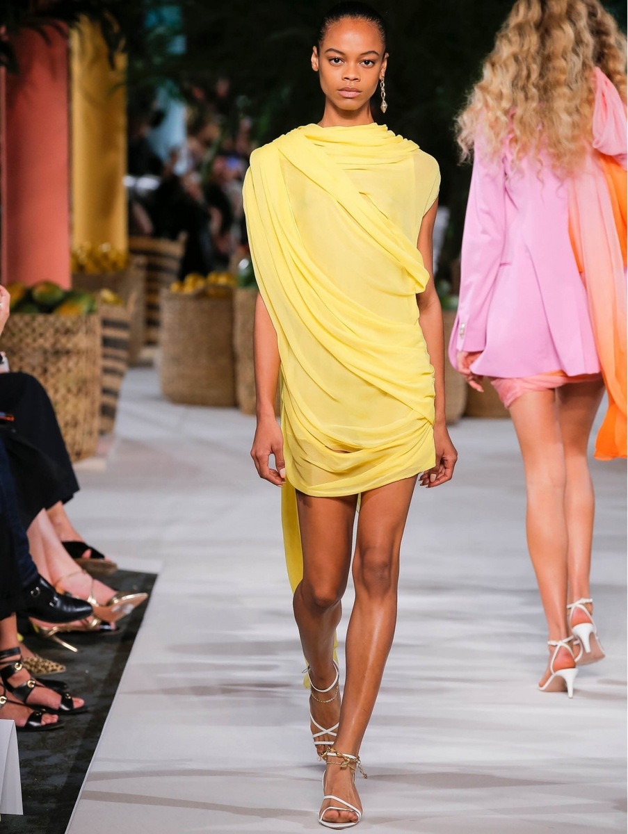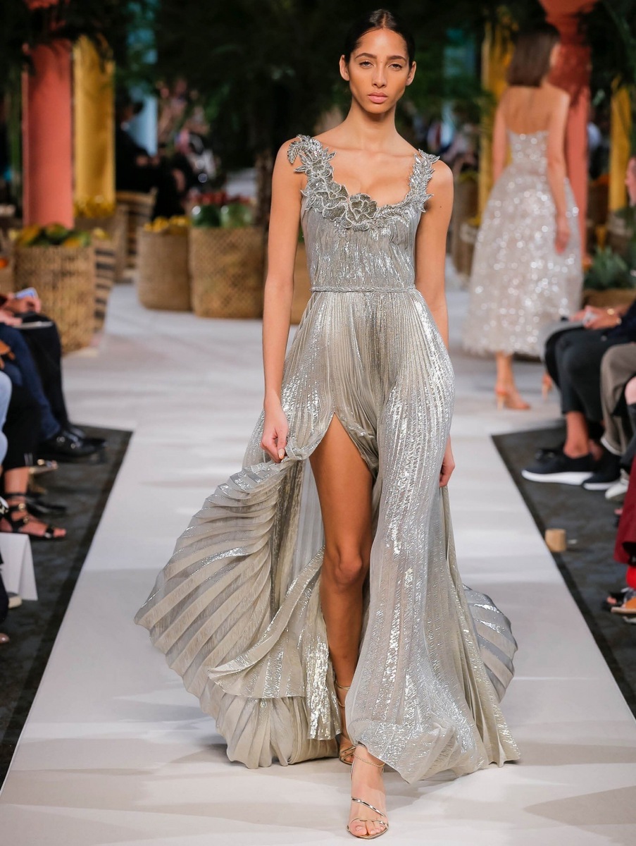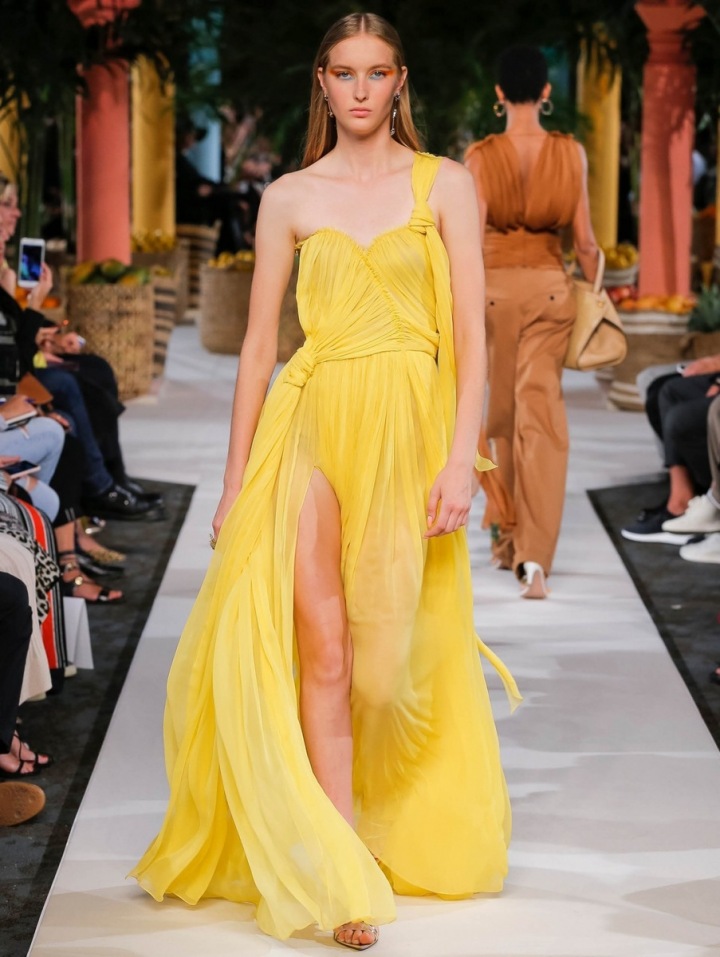 Soon afterwards, a plethora of evening gowns of asymmetrical cuts, high splits, deep décollets and a never-ending shine flooded the catwalk! Oh, that's exactly how we imagine a luxury collection with a touch of Caribbean exoticism. And this yellow model? Try it on and men will be falling at your feet!