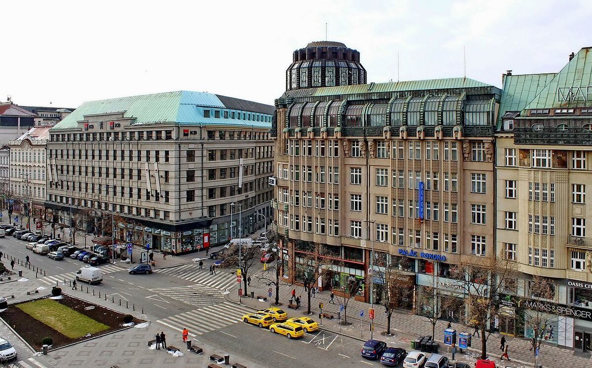 The 20th Cetury added several solitaires to the architectural face of New Town. Several new public buildings were constructed, such as the Lucerna, Koruna and Adria palaces, the Legiobanka or Škoda enterprise buildings, the U Nováků, Bílá labuť and Dům módy department stores, Mánes pavilion and more.