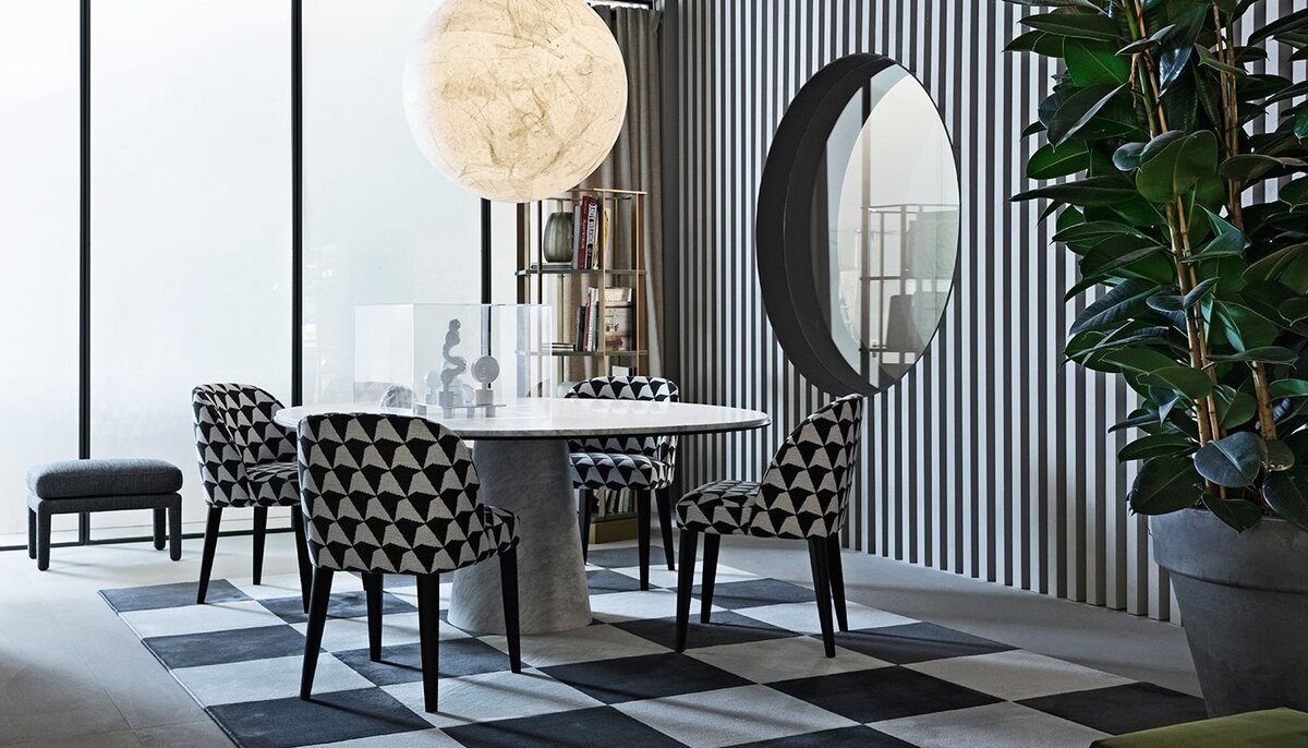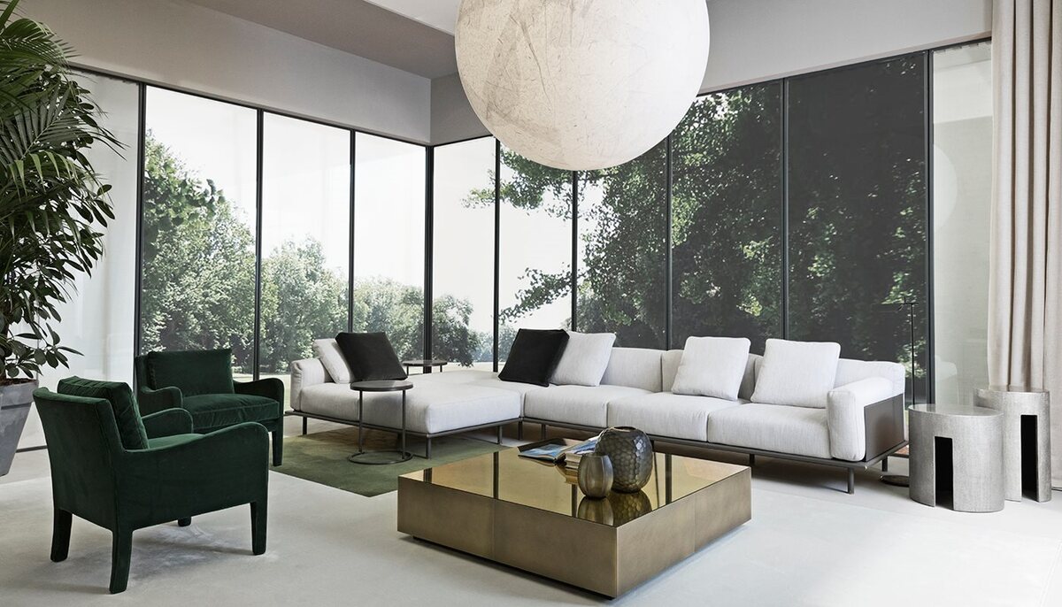 The 2017 collection combines influences from the past with the brand’s current vision. All Meridiani products are the result of using premium materials and careful quality control, and production is traditionally 100% Italian. The decent interiors primarily feature shades of green and grey. Black and white also play an important role. Meridiani interiors also use geometry, which can be found on the furniture and floors. The entire space gains sophistication from the works of art, which form an integral part of every modern, elegant and luxurious interior.