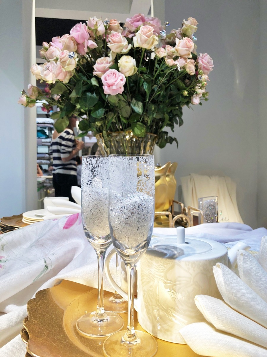 Anna Molinari Blumarine has been conquering the world of fashion and design for many years with gentle and delicate collections. Whether it's romantic dresses, luxury kitchen utensils or home decorations. The sensual floral motifs will mesmerize you and you will literally want to dive into her world. Just like we did, at her exhibition at the Salone del Mobile furniture and design fair in Milan.