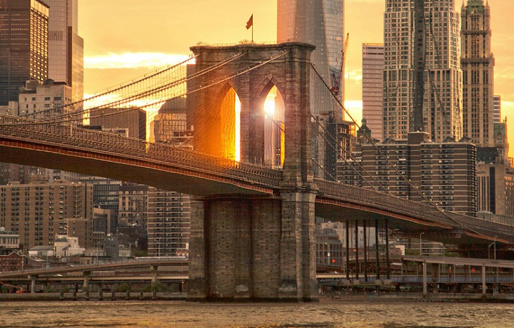 24. May 1883 the bridge was opened for the first time, thus linking the great cities of Brooklyn and New York. Fifteen years later the town of Brooklyn was officially merged with New York, the Staten island and several farming cities, of which great New York now consists. The impressive Brooklyn Bridge is considered to be miracle of engineering.