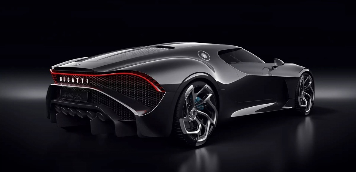 Bugatti claims that, unlike other Bugatti supersports, the luxury La Voiture Noire is a comfortable car for longer travel. Individual components were made by hand for Bugatti. In addition to the powerful LED stripe and the sturdy Bugatti sign, 6 tailpipes can be found in the back.