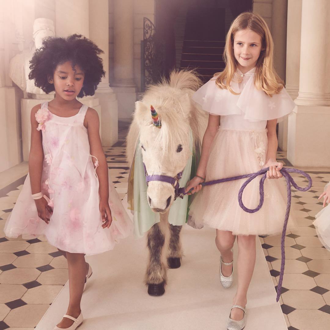 We truly fell in love with this beautiful campaign full of optimism, colours and smiles. In this campaign the young models demonstrate anarchy during a music lesson, walk though the hall of a house with a pony or don skates and enjoy a birthday party accompanied by deluxe glitter and colourful balloons. Viewers may even forget to look at the items the AW 18 collection actually consists of...