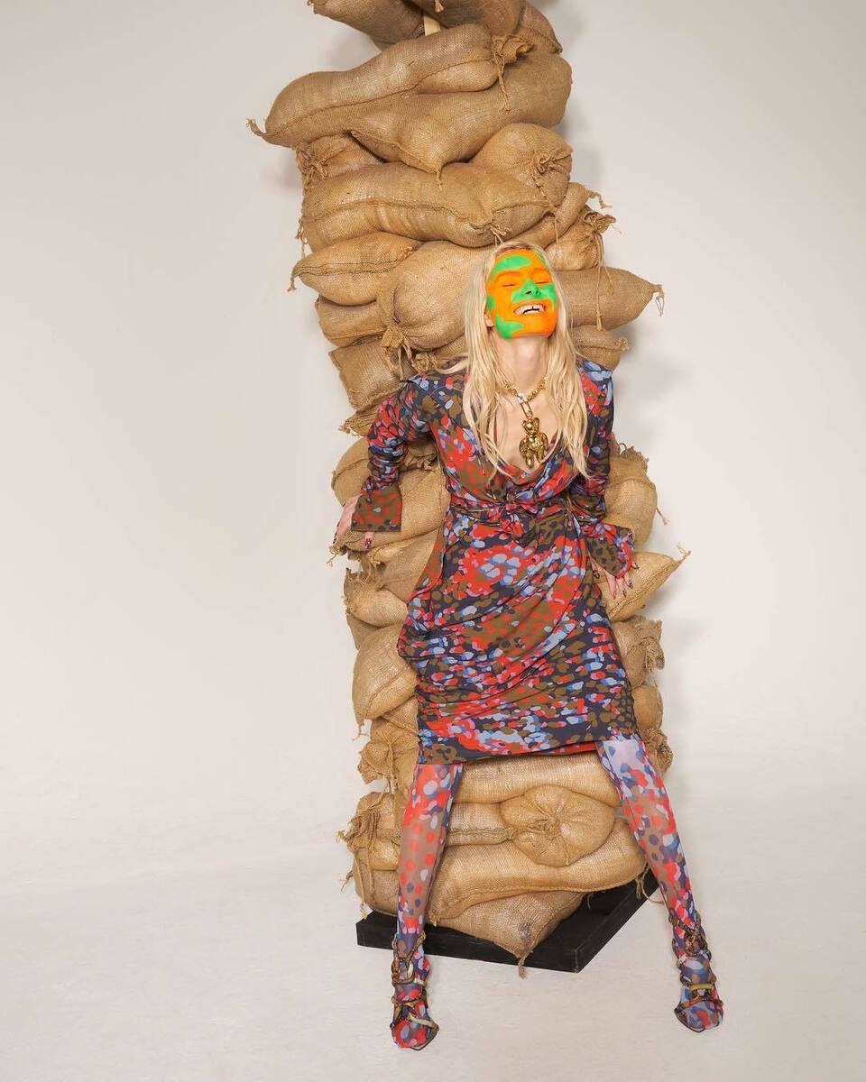 Vivienne Westwood is known for her creative models which tend to be provocative, personalized, extravagant and in the spirit of breaking down conventions. The luxury FW 18/19 collection, which the designer conceived in a playful manner, is no exception. In addition to distinctive models, there are also props in the form of prison beds, tin barrels, gunny sacks, banners and flags.