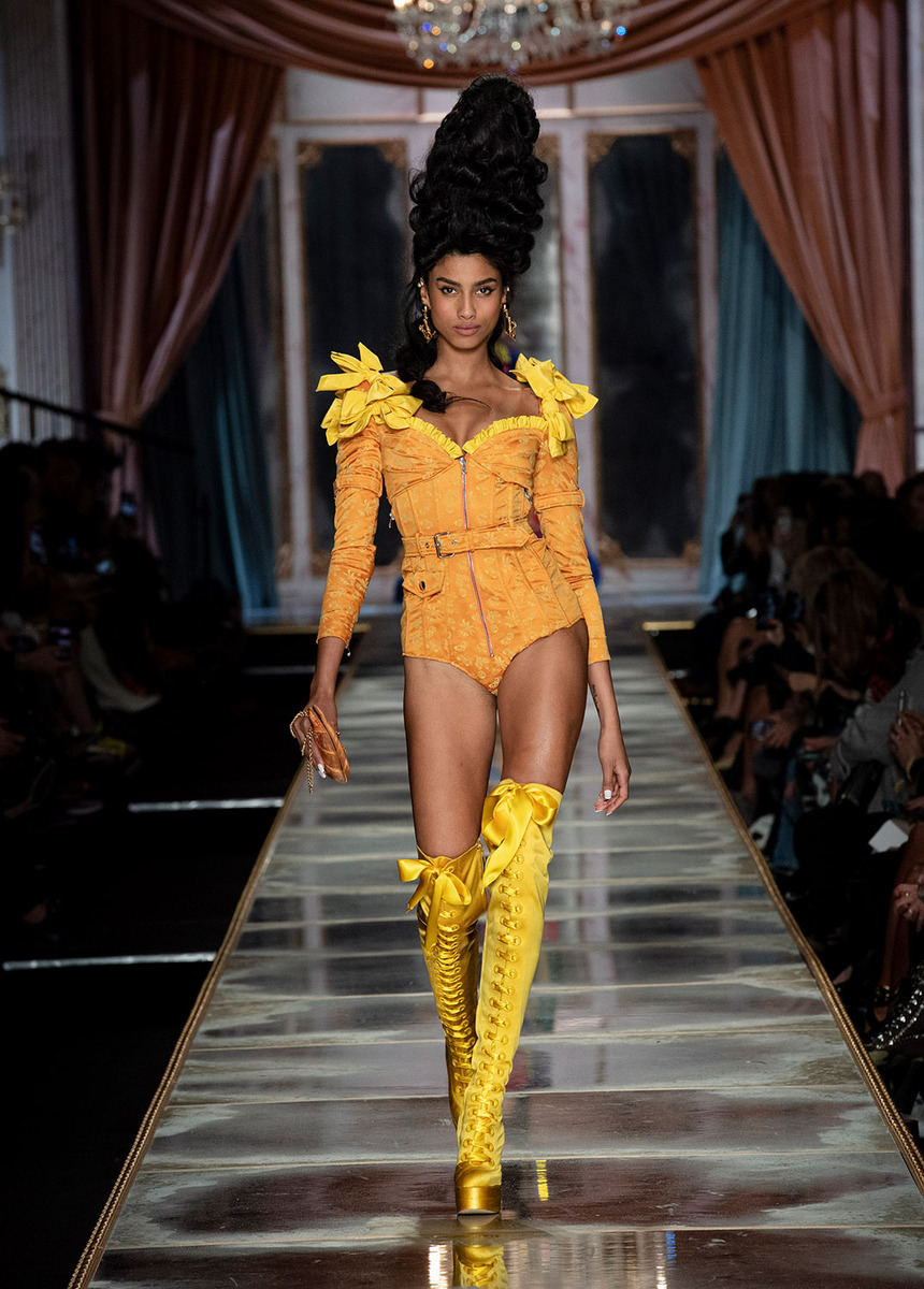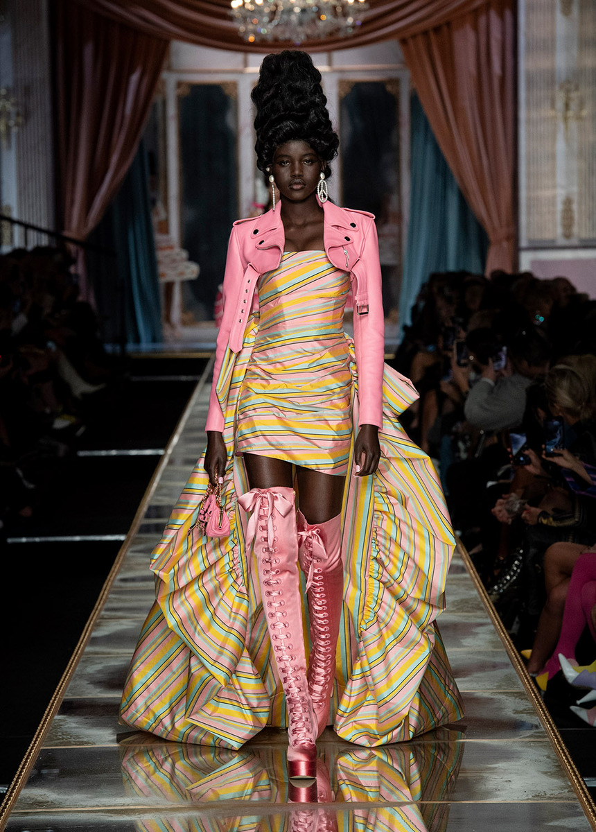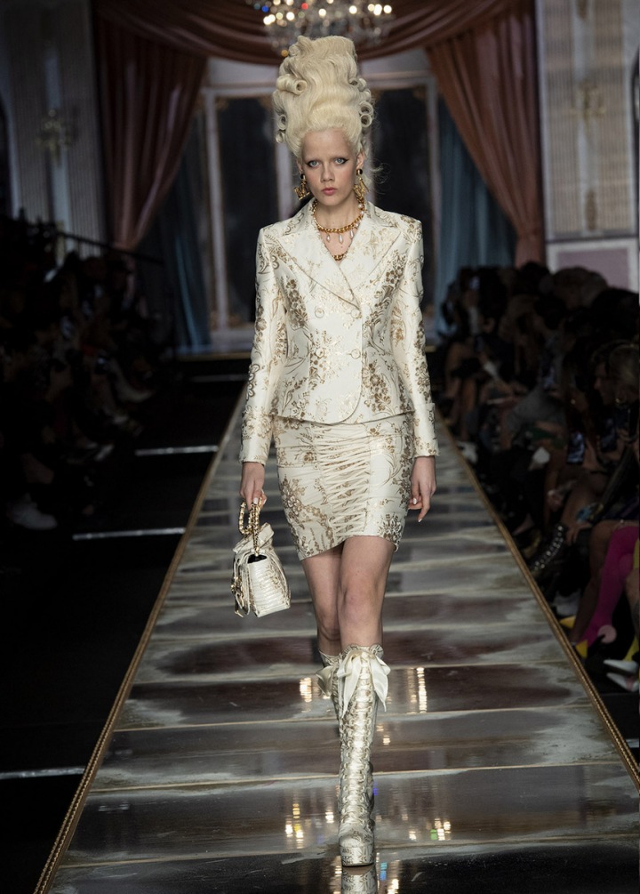 The French Revolution dominated by Marie Antoinette in combination with 80s denim and eccentric wigs? Who else could come up with such a luxurious and fresh combination but Jeremy Scott, who is at the head of the brand Moschino? Cake-shaped dresses are just the icing on the c... erm, they're pretty damn awesome!