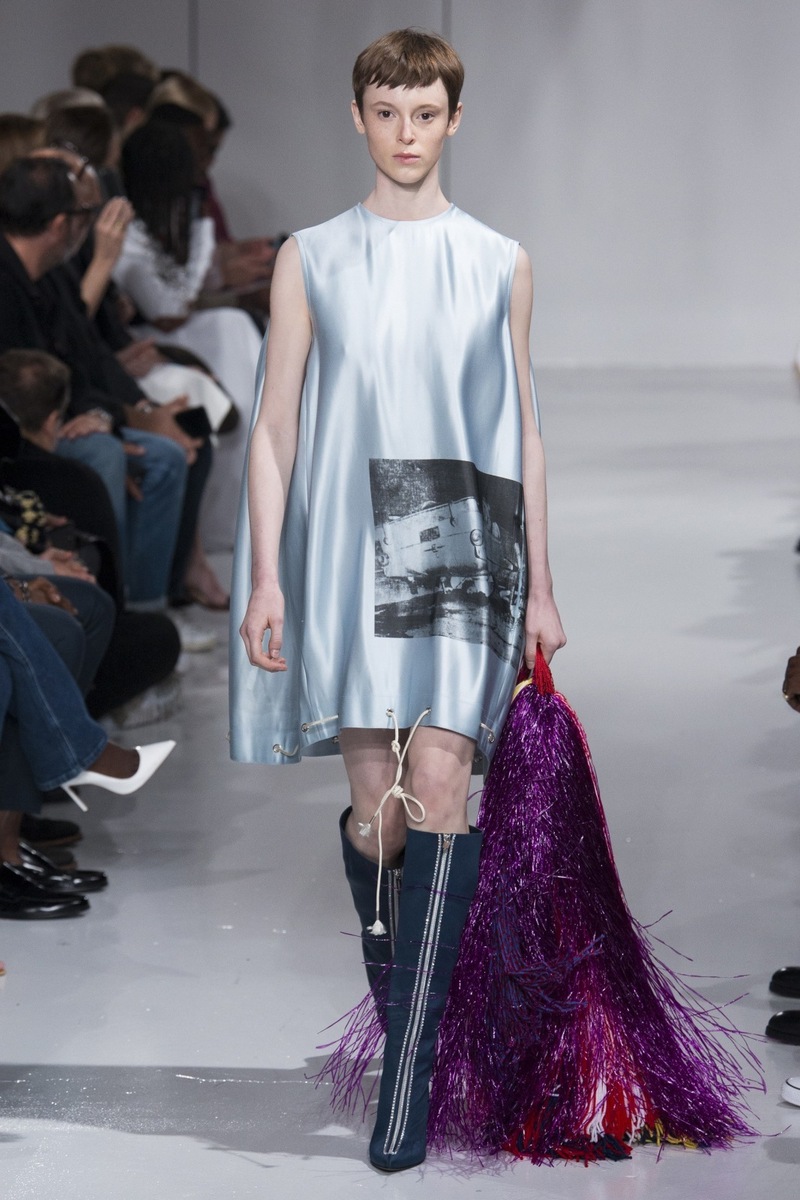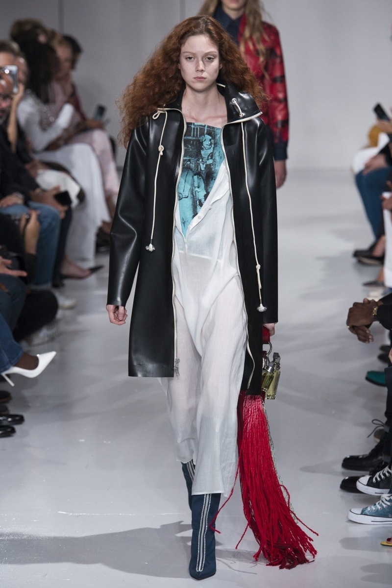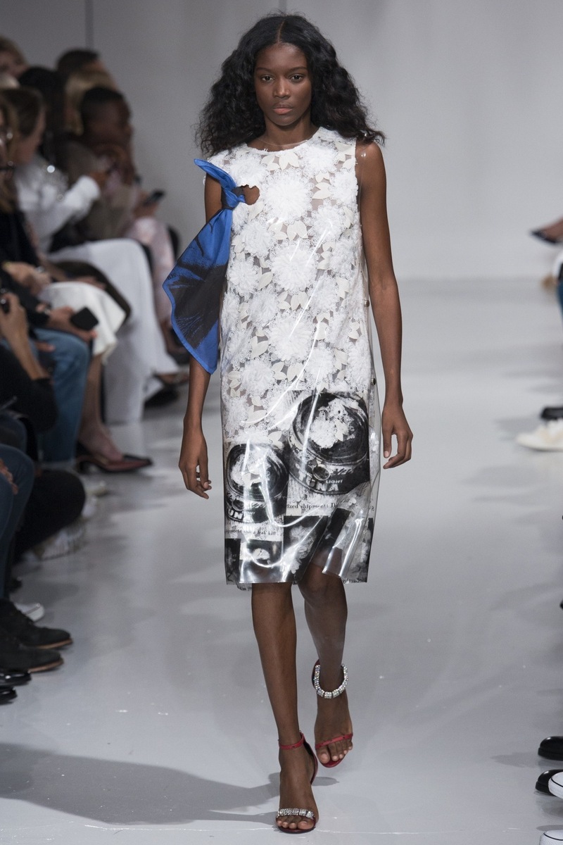This is what the designer was thinking of when he was creating the SS 2018 collection. The luxury clothing is inventive and perfect. The difference may be that he has an excellent intellectual and emotional approach. The horrifying prints are an emotional motif and you feel it at first glance, because you will feel the hairs on the back of your neck stand up. The same as when you think of the deluxe collection by Alexander McQueen with the Hitchcock motif. Do you remember the chill? Simmons used both shiny materials and light fabrics in his collection, as well as transparent meshes, which he layered over other items of clothing.