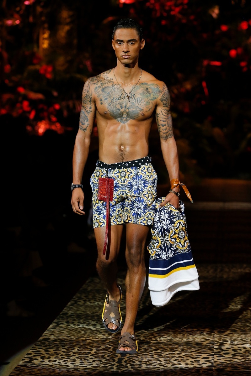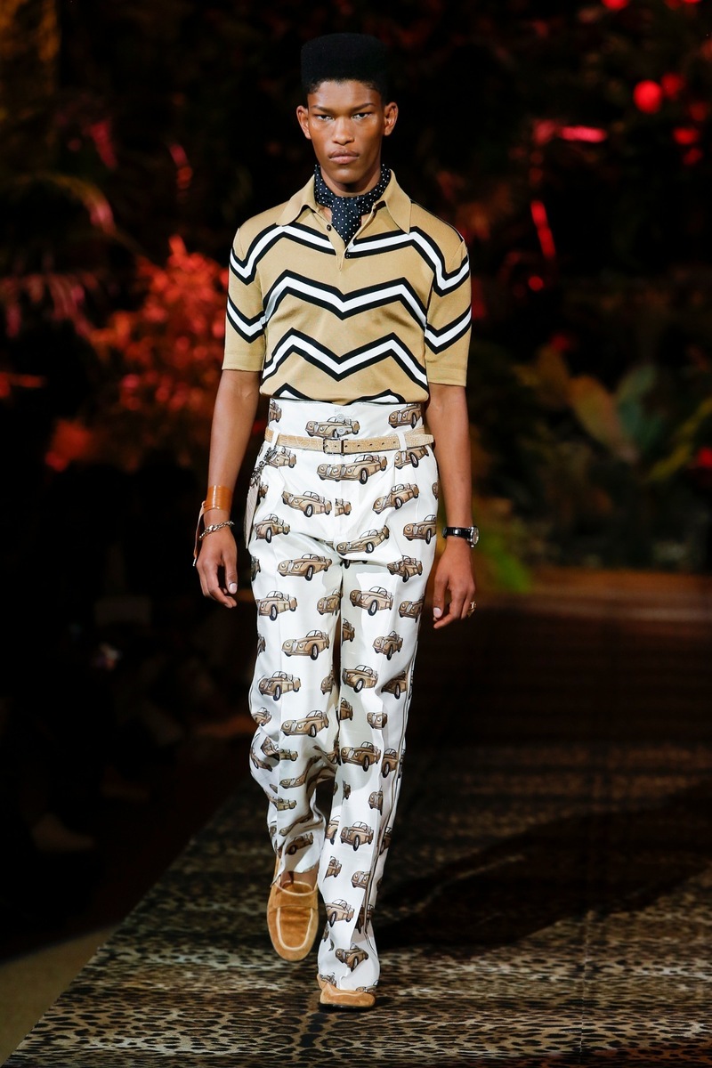 The SS 2020 collection is rich in colors and distinctive patterns. Like Versace, Dolce & Gabbana reached for the motif of a car put on swimsuits, pants, or beach towels. D&G says: This summer will be a ride!