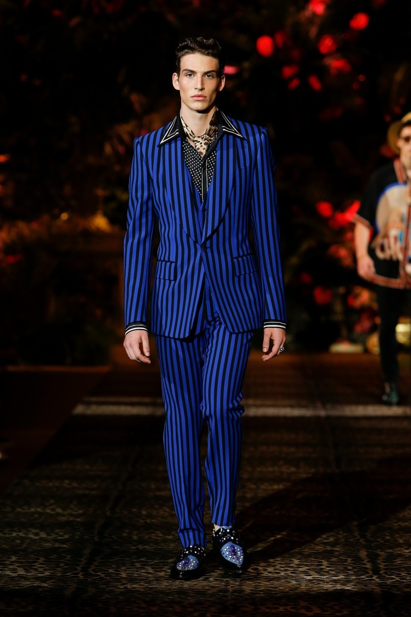 Dolce & Gabbana brings inspiration by legend Elvis and includes collared T-shirt and shirts, neck-tied scarves and stylish trousers with narrower trousers. So, gentlemen, do you rock as luxuriously as the king of rock 'n roll?