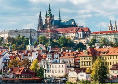 The symbol of Czech statehood and the residence of the president, this is Prague Castle, which was founded in the 9th century. According to the Guinness Book of Records it is the biggest cohesive castle complex in the world, it covers an area of nearly 70,000 m2 and is also registered as a UNESCO World Cultural and Natural Heritage Site.
