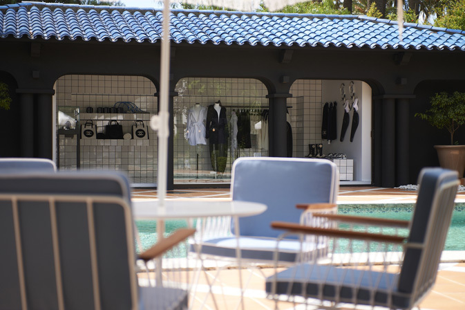 You can find it across the street from the police station from the The Troops of St. Tropez movie, main character of which plays the famous French actor Louis de Funése. This unique space offers more than just a luxury boutique. When you enter through the back door, you find yourself in a dreamlike garden, dominated by a pool with deck chairs. The entire space radiates a pleasant summer atmosphere. Special shop windows with the current swimming wear collection and other useful beach accessories are installed on the walls.