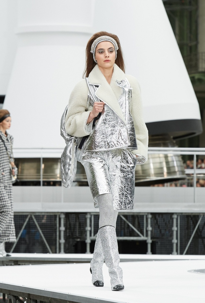 It will certainly be packed full of all things shiny and glittering. Elegant trouser suits will glisten, high lunar boots will have a silver theme and will be contrasted by a black toe. Tweed tunics and coats with sharp lines will keep you warm on your trip into space. There will of course also be silver leather. Eveningwear will be represented by black-and-white chiffon complemented by some luxurious and traditional Chanel pearls.