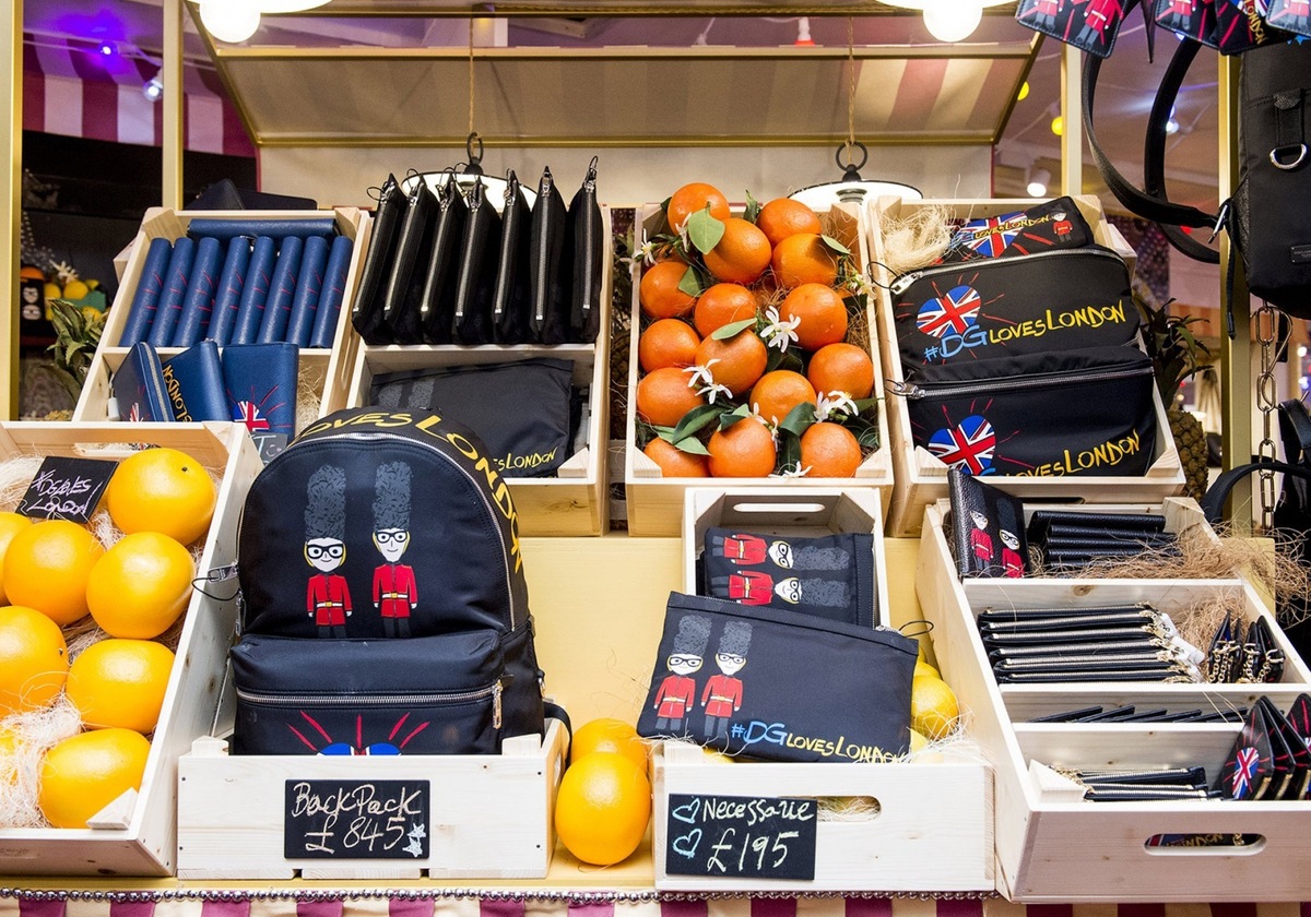 Buy a unique item from the exclusive DG LOVES LONDON collection: keychains, backpacks, wallets, and even slippers, jeans, bags and t-shirts.