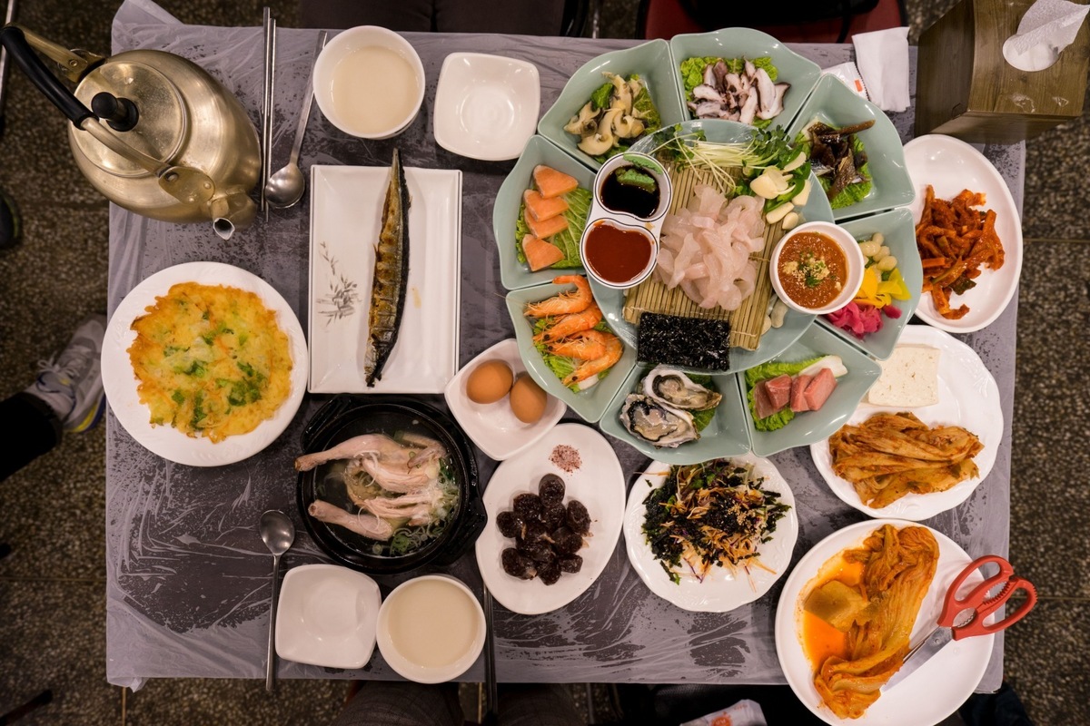 The Christmas buffet includes all sorts of things, from perfectly roasted turkey to crab legs and sushi. You will look for a traditional Christmas meal in vain here, but Koreans enjoy popular Korean cuisine at restaurants: sweet potatoes, noodles, rice soup, grilled beef (bulgogi) and spicy fermented cabbage (kimchi).