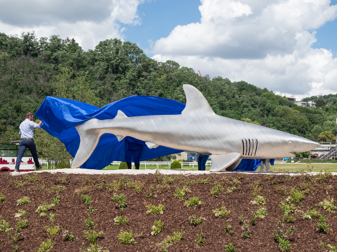 One of the iconic places of horse racing in the Czech Republic, the history of which dates back to 1906, has undergone major changes in recent years. The racing arena has got a new coat - its name and logo have changed. Mr. and Mrs. Radovan and Marie Vítek, who own the Chuchle Arena Prague, have decided to bring culture and art to the complex as well. Last year in June, a steel statue of a shark, made by the well-known Czech artist and academic sculptor Michal Gabriel, was unveiled.