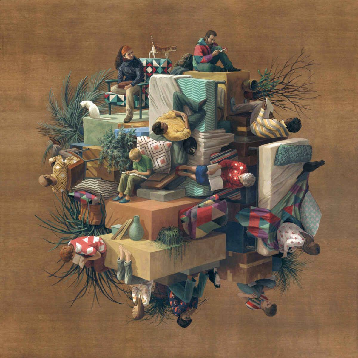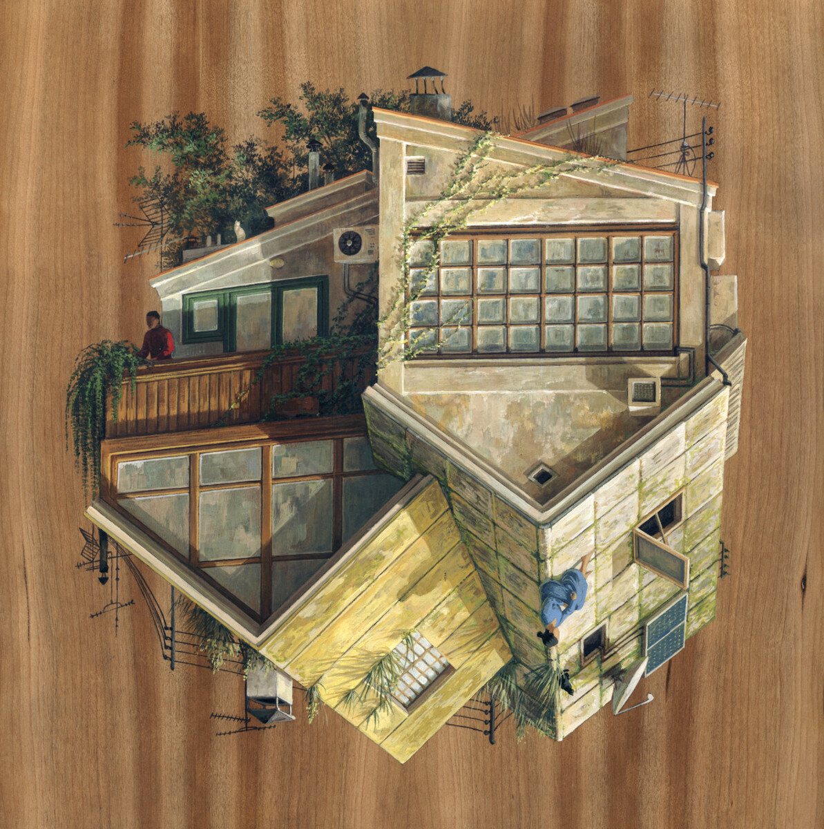 Cinta Vidal Agulló defies gravity in her work and departs from architectural convention. Various perspectives intersect in her pictures and the artist herself claims that each work points to the fact that one’s internal personal perspective of life need not necessarily conform to the reality around us. Her pictures are full of colours and various characters regularly seen in everyday life. In the regular world and the world of luxury.