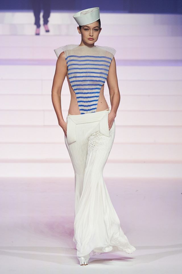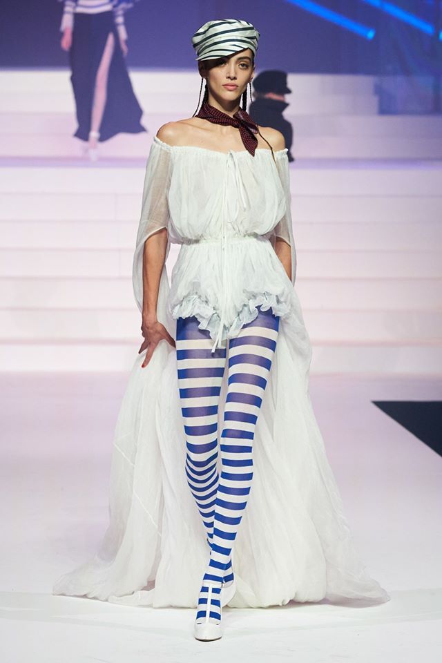 This will never get boring. Who could resist wearing white and blue in summer? I want all Gaultier's combination of navy models in my closet this year! For example this dress. Not only can I hide in it on the beach, but it will also serve me as a tent in case I can't find accomodation.