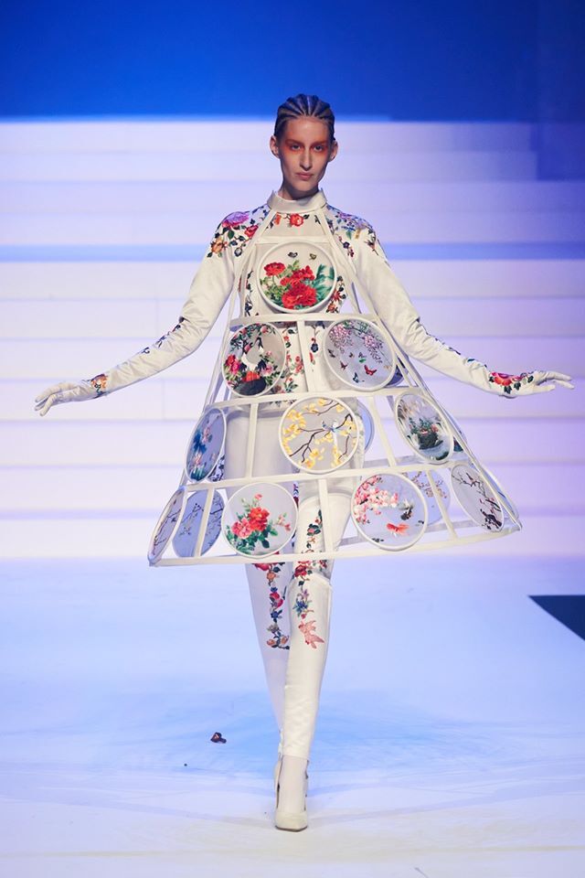 Way to go, Gaultier! The SS20 haute couture fashion show was entertainment at its finest from the beginning to the end. It all started with luxury outfits that the models didn't wear on their bodies, but in front of them! This optical illusion is simply hilarious and we don't remember the last time we saw something like this.