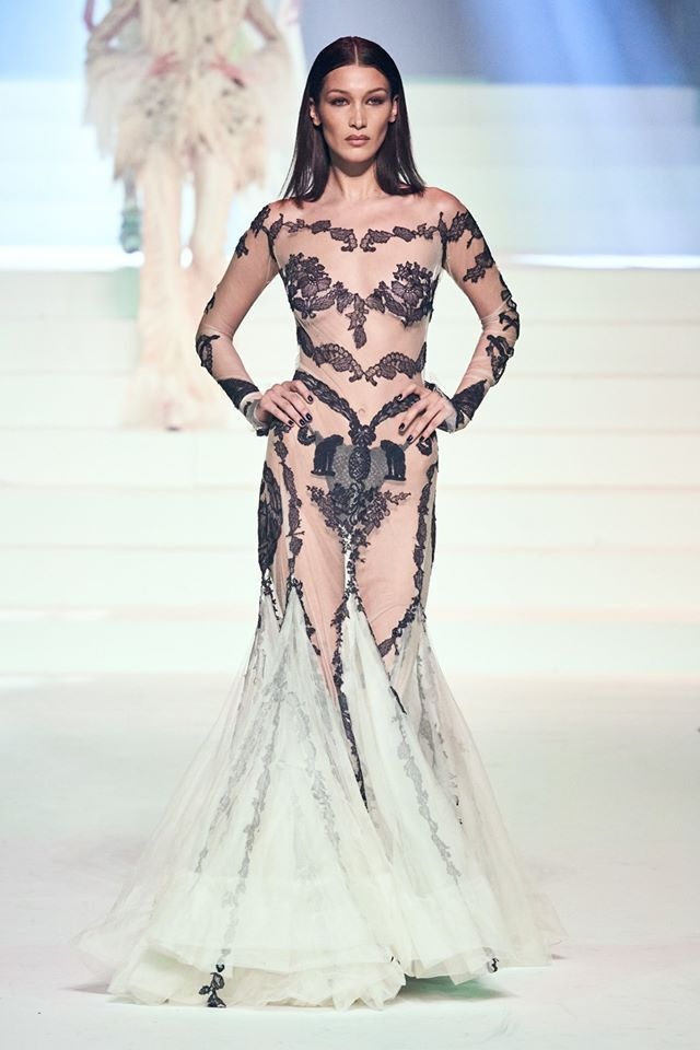 Shortly afterwards, a show of sensual lingerie and corsets followed, presented, among others, by the charismatic Dita Von Teese or former partner of heartbreaker Bradley Cooper - Irina Shayk. She wore a corset with pointed breasts, which brings back memories of the legendary piece, with which the popular Madonna shocked the public in the 1990s. Yes, this was once the work of Jean Paul Gaultier, too.