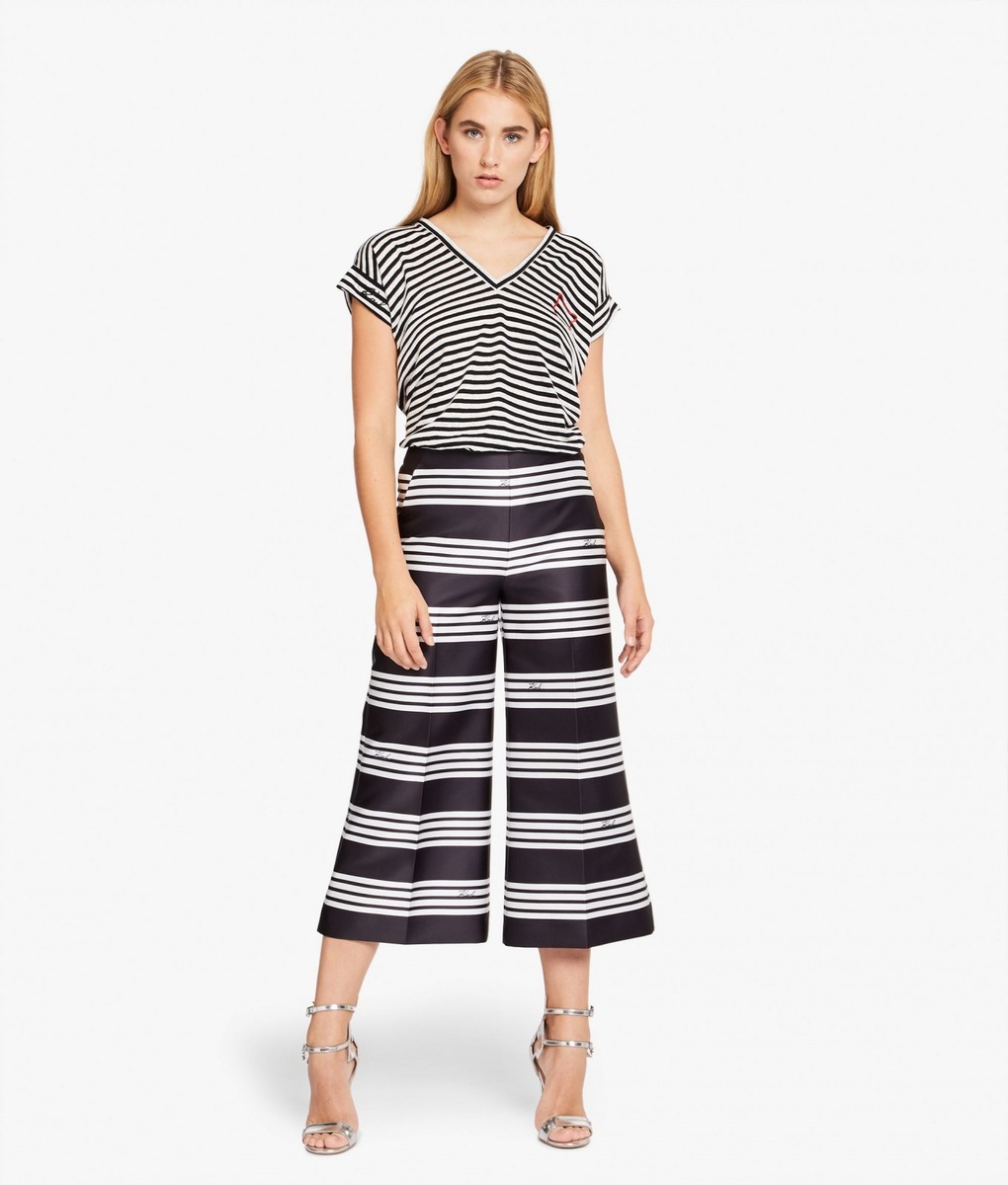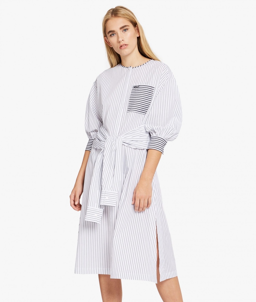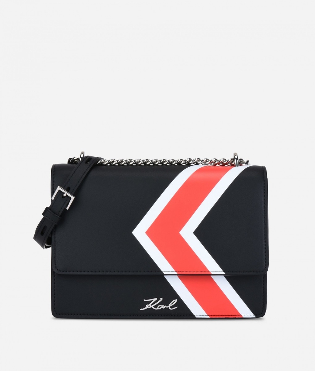 A stylish affair her are the handbags K/STRIPES Shoulder Bag and Camera Bag. While the Shoulder Bag may be purchased in a classic black or deep red, when creating the Camera Bag Karl Lagerfeld also reached for yellow or blue. The icing on the cake of the entire collection is a black-and-white shirt-dress, playing with stripes in nouvelle directions and also the luxurious striped dress with cuffs on the sleeves. The Stripes collection furthermore consists of tops, skirts, trousers, handbags, key pouches, baseball caps or mobile phone covers.