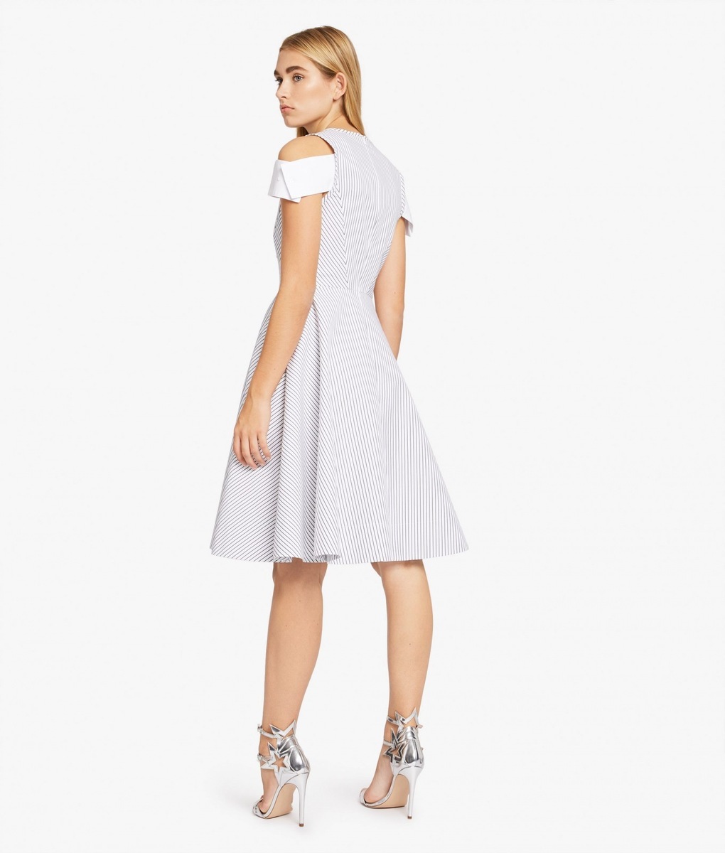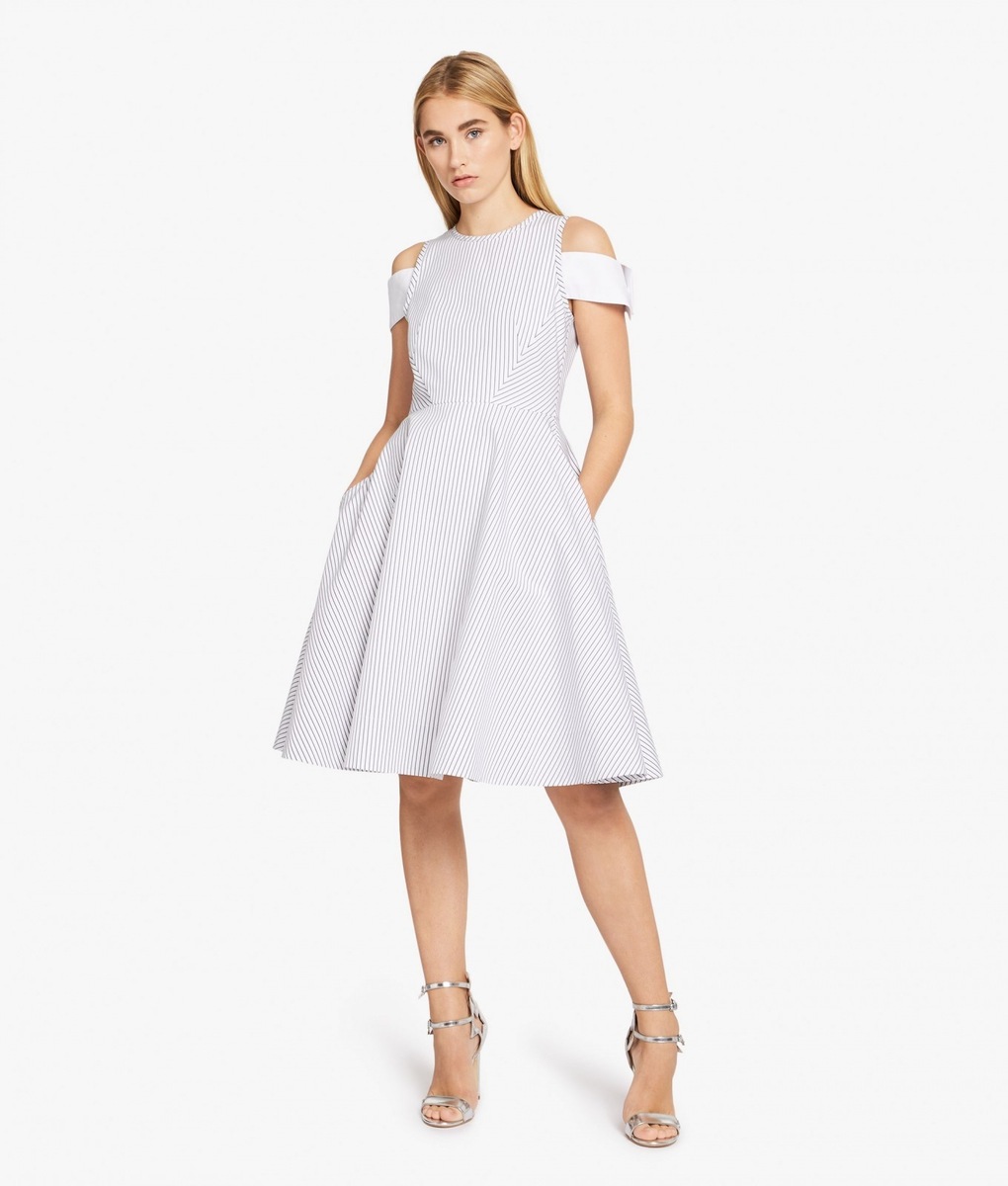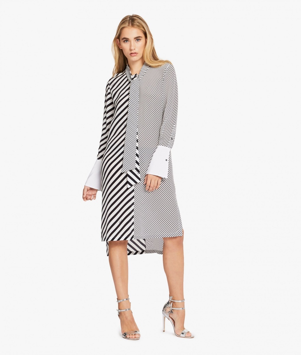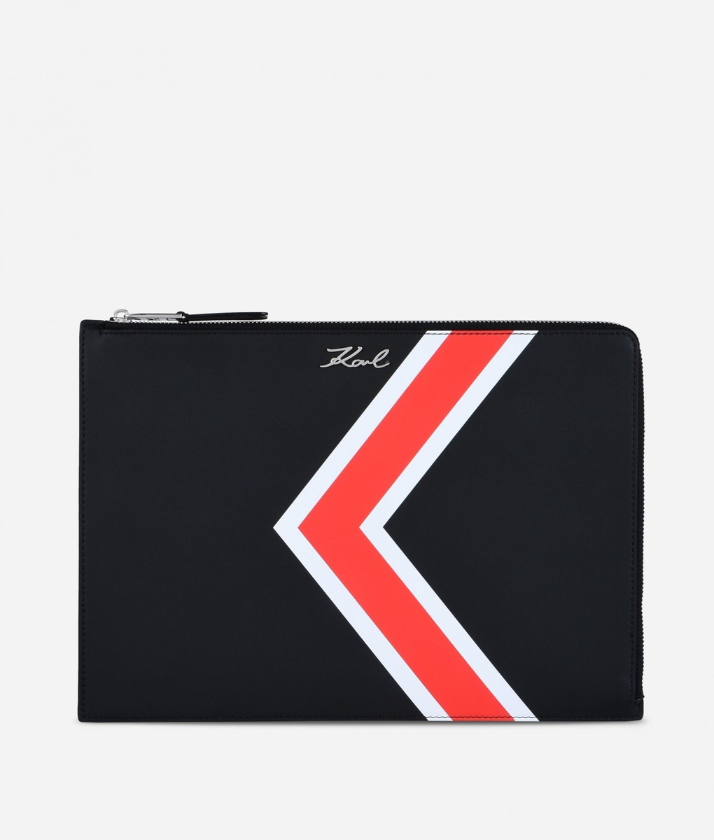 A stylish affair her are the handbags K/STRIPES Shoulder Bag and Camera Bag. While the Shoulder Bag may be purchased in a classic black or deep red, when creating the Camera Bag Karl Lagerfeld also reached for yellow or blue. The icing on the cake of the entire collection is a black-and-white shirt-dress, playing with stripes in nouvelle directions and also the luxurious striped dress with cuffs on the sleeves. The Stripes collection furthermore consists of tops, skirts, trousers, handbags, key pouches, baseball caps or mobile phone covers.