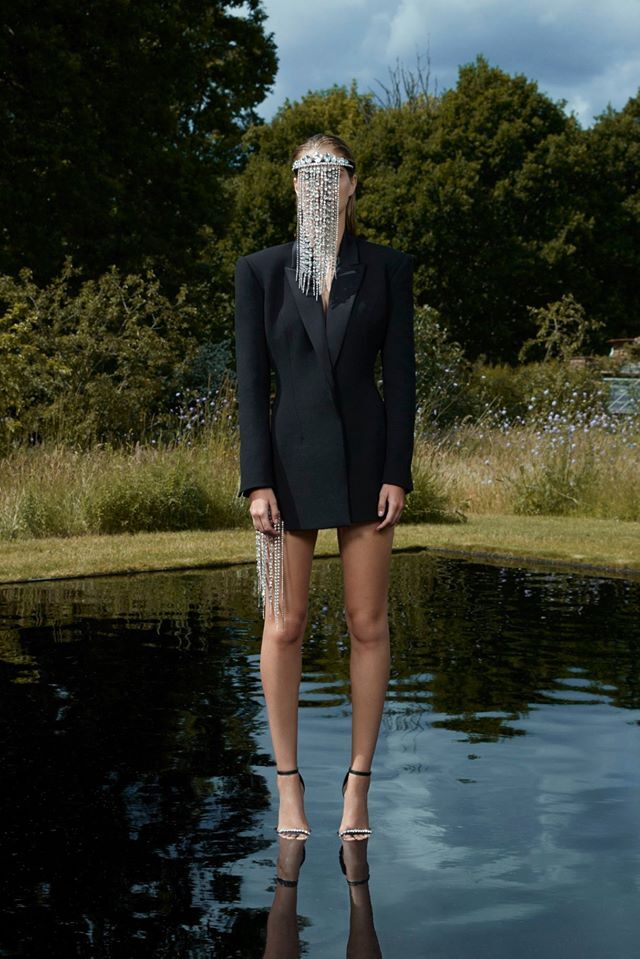 When I see this model, I can't but wonder when it was designed. It's ideal for the time of COVID, or for parties where you plan to take a nap. Anyone who has seen my model at Fashion Week proably is probably aware that I'm okay with that. But let's be serious now. A well-cut black jacket always gets a yes. In case of silver hair accessiories, however, I sort of automatically count with the fact that they shouldn't be covering the entire face. Right?