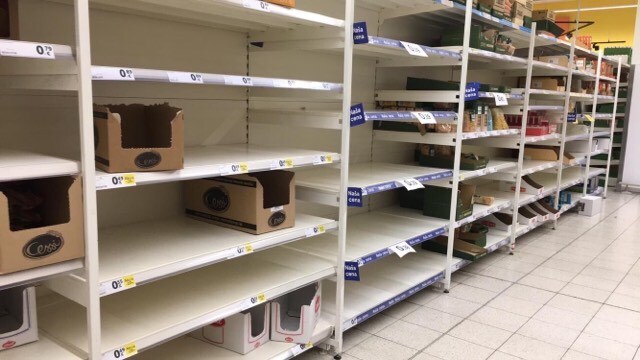 The shops are often half empty. They do restock, but it can easily happen that you miss out. Unlike the Czechs, the Slovaks make sure to maintan the recommended distances: "People are allowed to enter the stored in limited numbers, so that not many would accumulate at the same time. I go there as little as possible. Right now, I don't want to take any chances!"