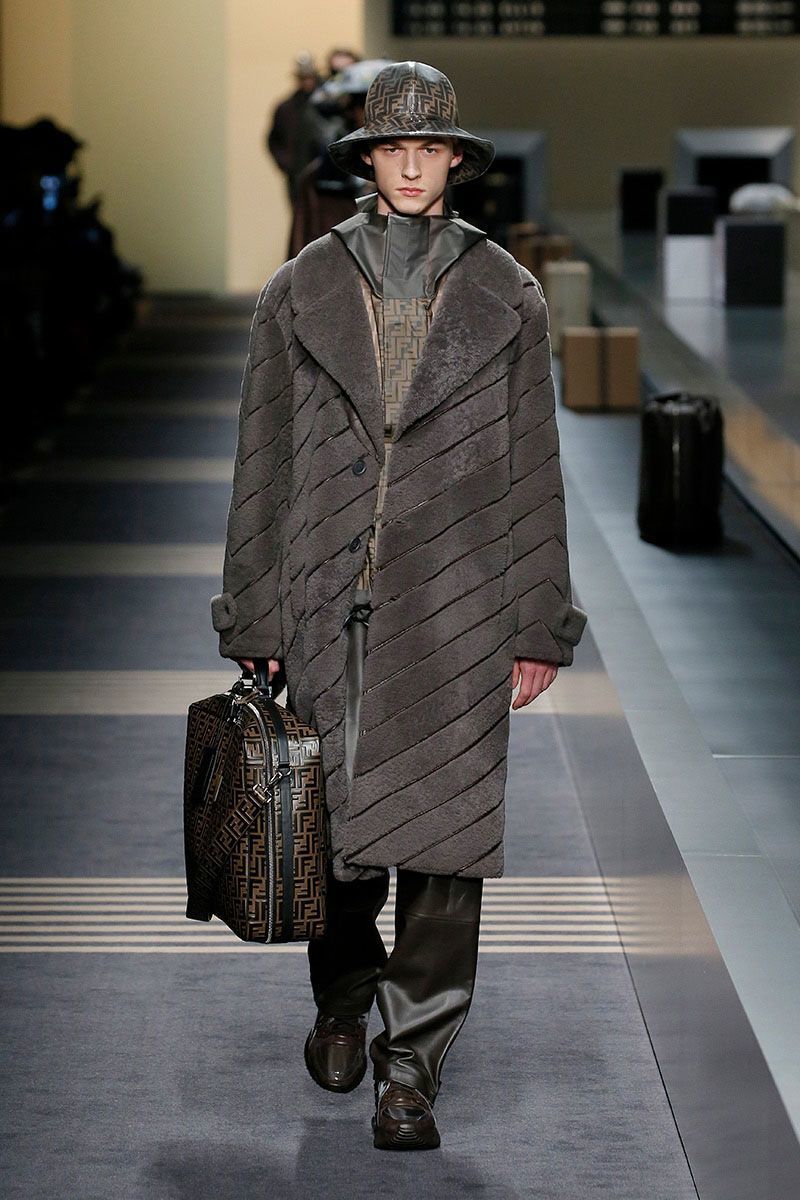 I do not know why that should be, but I am looking at the new FENDI men's collection as if it were intended for women. Hold on a minute, I think I got it. It is those fur coats (a guy wearing a full length fut coat outside the Nordic countries?!)! In the Czech Republic the greatest promoter of FENDI is the wife of Andrej Babiš, Monika. So I have immediately imagined her in those new coats and furs, whose logos just shout ´look at me, I am from FENDI!!!´. Surprisingly, I can also imagine the umbrella on her blond head; it would mean less duties for her personal bodyguard.