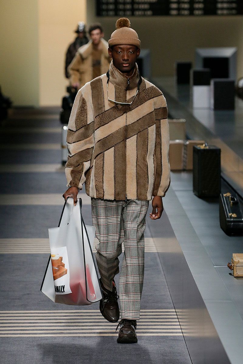 The FW 2018 collection consists of stylish and practical clothing for comfortable travelling. It also features sportier sweatshirts, tops and pullovers, relaxed suits and trousers or trendy overcoats and jackets, which not only look good but above all will keep you warm. This is because the majority of them is made of luxurious fur. As regards accessories, there were many travel bags or suitcases to be seen and the catwalk was thus transformed into an airport terminal.